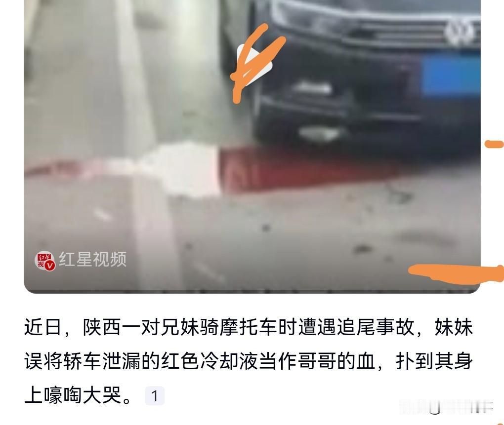 可以看出这女孩对哥哥的感情很深。 开车一定要注意安全。 近日,陕西一对兄妹骑摩托车遭遇追尾事故,二人被甩飞。 妹妹把地上的红色冷却液当成了哥哥的血液,以为哥哥受伤不行了。 趴在哥哥身上嚎啕大哭,一声声撕心裂肺的呼喊着哥哥。 幸亏哥哥没生命危险,要不然妹妹会老伤心了。