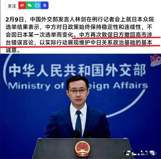 中方对日本政府的表述有改变:从【日本政府】变成了【日本执政当局】同时持续要求日本高市必须撤回涉台危险言论!中方表示日本选举政局与中国无关 对中国毫无影响,中方依然持续发展壮大! 这个措辞变化发生在日本众议院选举后不久。高市早苗领导的执政联盟获得了过半议席,但中国外交部发言人林剑在回应时,首次用了“日本执政当局”这个新说法,并且明确强调了三个“坚定不移”的立场。 其实称呼变化这个事儿,还挺讲究的。以前说“日本政府”,是一种常规、中性的说法;现在改称“日本执政当局”,听起来就多了层意味:好像不是针对整个国家,而是特指眼下掌权的这拨人。 这种措辞调整,背后是对日本近期一系列越界言行的回应。尤其是高市早苗多次把“台湾有事”和“日本安全”强行挂钩,甚至暗示可能动用武力介入台海。这些话不仅踩了中国的红线,也违背了中日之间几十年来达成的基本共识。 要知道,早在1972年《中日联合声明》里,日本就明确承认台湾是中国的一部分,并承诺不支持“台独”。可高市上台后,却把涉台问题当成外交筹码,甚至拿来为国内选举造势。 面对这样的挑衅,中方的反应既坚定又克制。一方面,在外交场合改用“执政当局”这一更精准的表述,划清“反对的是政策,不是人民”的界限。 另一方面,采取有针对性的反制措施,比如暂停进口日本水产品、管控稀土资源等。这些举措直接让日本市场倍感压力,而这种压力也很快传导到民众和企业层面。 与此同时,中方也明确划清内外界限。日本有些政客喜欢把国内问题甩锅给中国,说什么“被中国打压才选情不利”。 对此,中方直接回应:你们的选举跟我们没关系,我们也不干涉。你可以换首相、换政党,但只要涉及台湾、历史、领土这些根本问题,中国的立场不会因为你的政治周期而动摇。 有意思的是,日本内部对高市的做法也开始出现质疑。前首相鸠山由纪夫、桥下彻等人公开批评她“缺乏战略眼光”;渔民、旅游业者走上街头抗议政策误国;普通市民也担心被卷入不必要的冲突。 总而言之,外交言辞变化的背后,是核心利益的博弈。中方用词调整既表达了明确警告,也留出了余地。接下来,就要看日本执政当局是否能够读懂这些信号,用行动来消除紧张根源。 而无论外部风云如何变幻,中国都将按照自己的节奏持续发展壮大。这不仅是对自身实力和国际影响力的自信,更是应对一切复杂局面的最坚实基础。 对此你有什么看法?欢迎在评论区留言讨论。 文|墨海 编辑|史叔