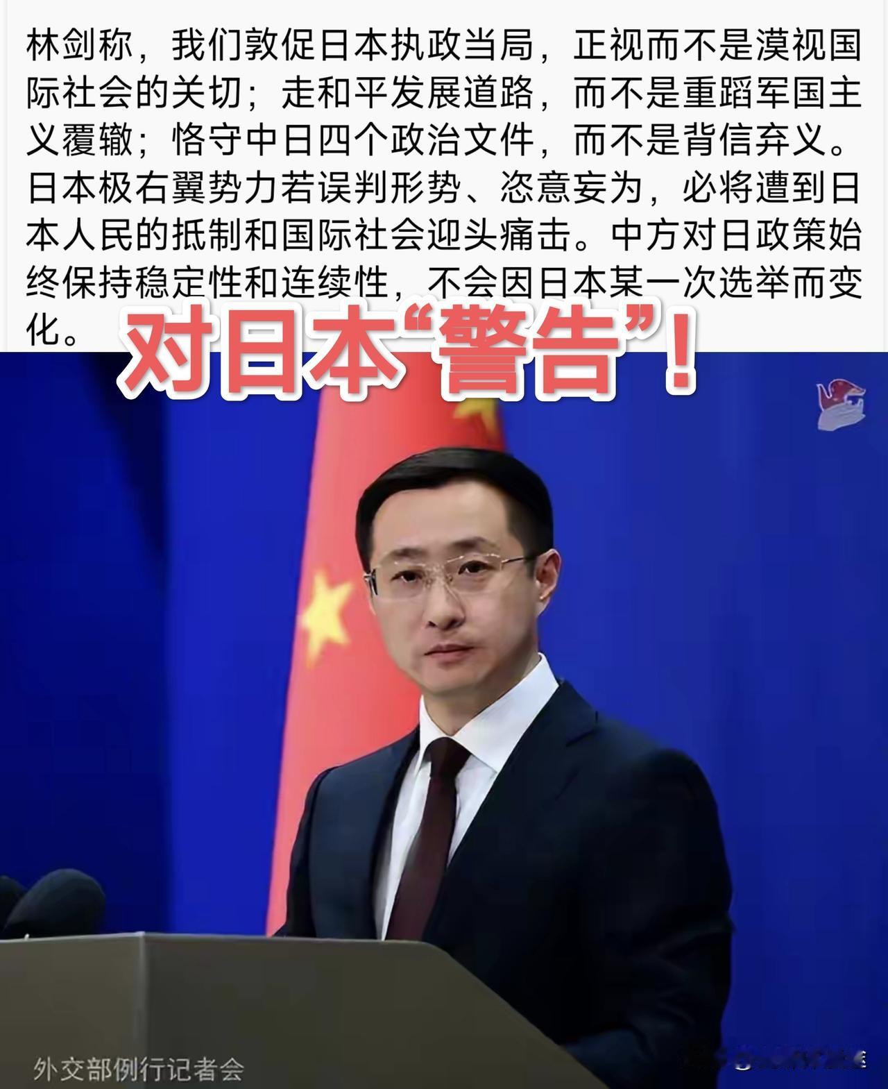 日本高市胜选:各国送贺电,中国送“警告”!日本谎诞的妄想“中方妥协”已经落空! 美国 印度 等国纷纷给日本高市送上“胜选”贺电之余,中方反手一记警告:日本执政当局 必须撤回涉台错误言论,恪守中日四个政治文件,如果日本极右翼势力误判形势、恣意妄为,必将遭到日本人民的抵制和国际社会迎头痛击! 中国外交部更是表态,至于日本的选举 与中国无关,谁执政也与中国无关,中国不会高兴也不会难过 中国的对日政策始终保持稳定性与连续性! 中方的回应更像是一个一个耳光猛抽着日本执政当局的脸,更是回应了日本执政当局的荒诞言论:只要高市早苗获得压倒性大胜,稳住了政局,中国就不得不向日本妥协,主动让步来寻求修复中日关系。 而中方明确告诉日本高市,如果不撤回涉台错误言论并向中国人民道歉,一切免谈,反制只会越来越严,而如果日本军国主义想复活 想推翻二战胜利果实,中国与俄罗斯作为战胜国 作为联合国常任理事国,中国将动用“敌国条款”,战胜国有权力痛击“战败国”! 只要日本胆敢挑衅中国 胆敢不守规矩 胆敢对中国指三道四,一切反制都在路上!