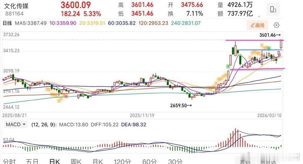 2026.2.10周二午评: AI应用相关产业大爆发!文化传媒,影视ETF涨停板! 周二早盘整体小幅震荡整理为主,目前走势还是正常的,处于均线上方强势区,不过也能看得出来,节前效应越来越明显,成交量保持在2万亿附近,存量博弈,市场仅存在局部板块和个股机会,所以,一边欢喜,一边忧。喜的是AI应用方向,文化传媒,影视短剧等今天爆发了,包括算力方向,其实涨的都是与AI相互关联的板块,大家要知道这些其实涨都是AI应用这一类的逻辑。 不过也要注意,像AI应用,文化传媒,技术面5日线有一定乖离,且文化传媒也到了大箱体上轨附近压力,一次性突破的概率还是比较小的,所以不宜追涨,大概率会转震荡。包括算力租赁5日线有一定乖离,不追涨,但拉回还是机会,沿着5日线跟踪观察即可,这些方向不要丢,其实已经强调很多次了。 大家有没有似曾相识?去年爆发的是DeepSeek,不过是在春节假期期间,而这次Seedance2.0提前爆发了。 指数方面,重要性没那么高,不破下方均线仍有机会往上轨方向靠拢,缩量拉升的过程中,不要盲目去追就行,注意一下节奏,问题就不大。中证2000指数代表的小盘股,就看w颈线支撑,不破就还会往上轨靠拢。 总的来说AI应用包括算力,依旧是关注的重点方向之一,但大涨过后不宜追涨,会有分化,抓板块内部强势个股,低位且有资金介入的品种,回调过程中寻求低吸机会,买阴不买阳,低吸不追涨。 个人观点,仅供参考!