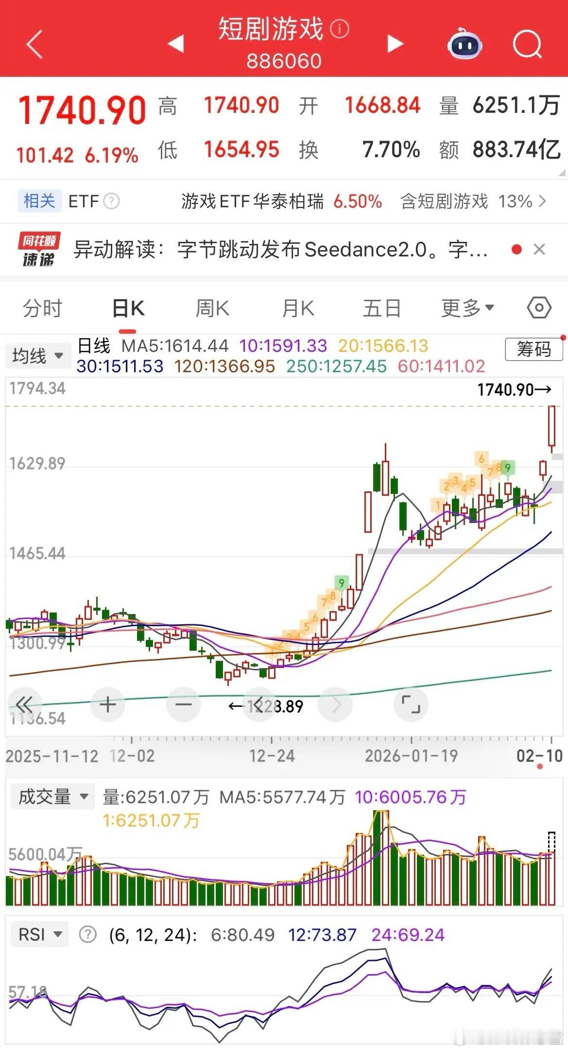 盘面呈现明显强弱分化:AI应用产业链全线爆发,影视院线大涨近10%,游戏、传媒涨幅超4%,成为盘面核心亮点;半导体、科创50冲高回落,贵金属、白银LOF震荡走弱;白酒、光伏、地产、保险等板块调整居前。