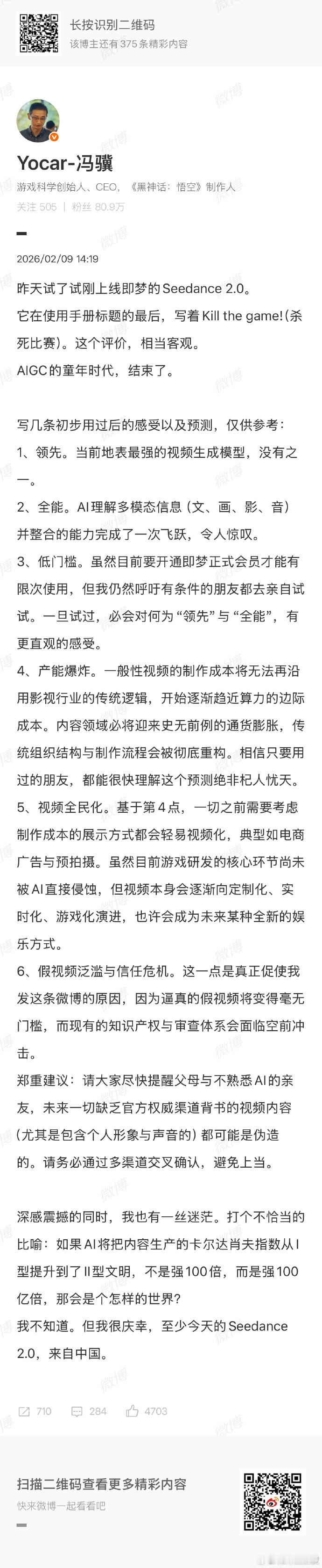 黑神话制作人点评seedanceAI的童年时代结束,将会杀死游戏和相关视频职业