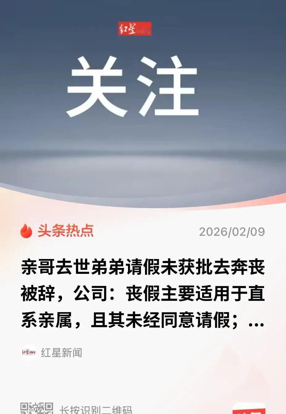 亲兄弟去世请丧假,被辞退算不算太绝? 2023年4月,乔某进北京一养老中心当厨师,月薪约7000元,干了不到4个月,远方哥哥突然病危,他一口气开口请了15天假。 没等假批下来,哥哥就因病离世,死亡通知书时间卡在那一周。乔某先买了回家的票,在路上收到经理短信:不用来了,人事已办完。 这条信息,比上千公里的路程还冷。 仲裁、诉讼一路打到法院时,养老中心拿出文件,说直系亲属范围只包括父母、配偶、子女,旧规里给的丧假一般也就1至3天,哥哥这种旁系亲属,法律没写必须给假。 从字面规定看,单位的说法并不离谱,制度里甚至连“路程假”都只照顾到在外地的直系亲属,但现实里很多企业会额外给2周甚至3个月的人性化假期,这属于企业文化而不是硬指标。 法院却从另一条线切入:即便没有强制丧假,员工要办白事,可以转为事假,养老中心一刀切地拒绝并解除合同,已突破公序良俗的底线,且乔某工作不足半年,最终按一个月工资判给7000元赔偿。 这起案子里,法条、运营成本、家庭伦理被硬拧在一起:一边是厨房人手紧缺、老人三餐不能断;一边是亲兄弟去世,感情上远不止“旁系亲属”四个字。 你会怎样在“规定只给1至3天”与“现实需要十几天”之间做选择?如果由你设计企业制度,遇到亲属范围模糊、情感强度却很高的丧事,愿意拿出多少弹性空间,既不拖垮运营,又不让员工心寒?