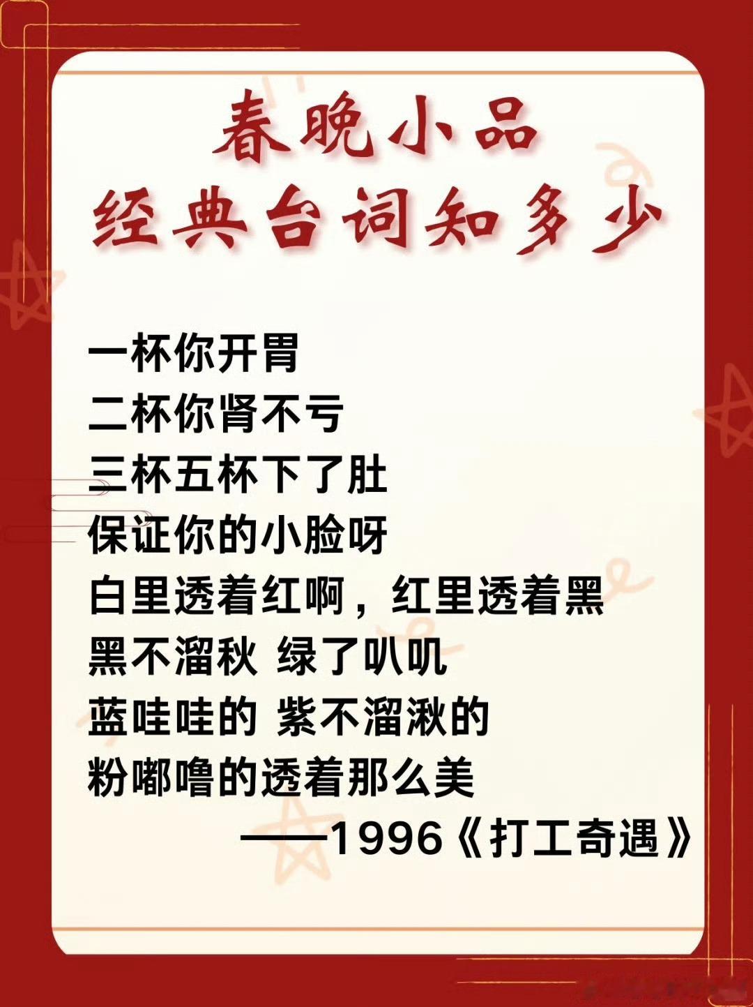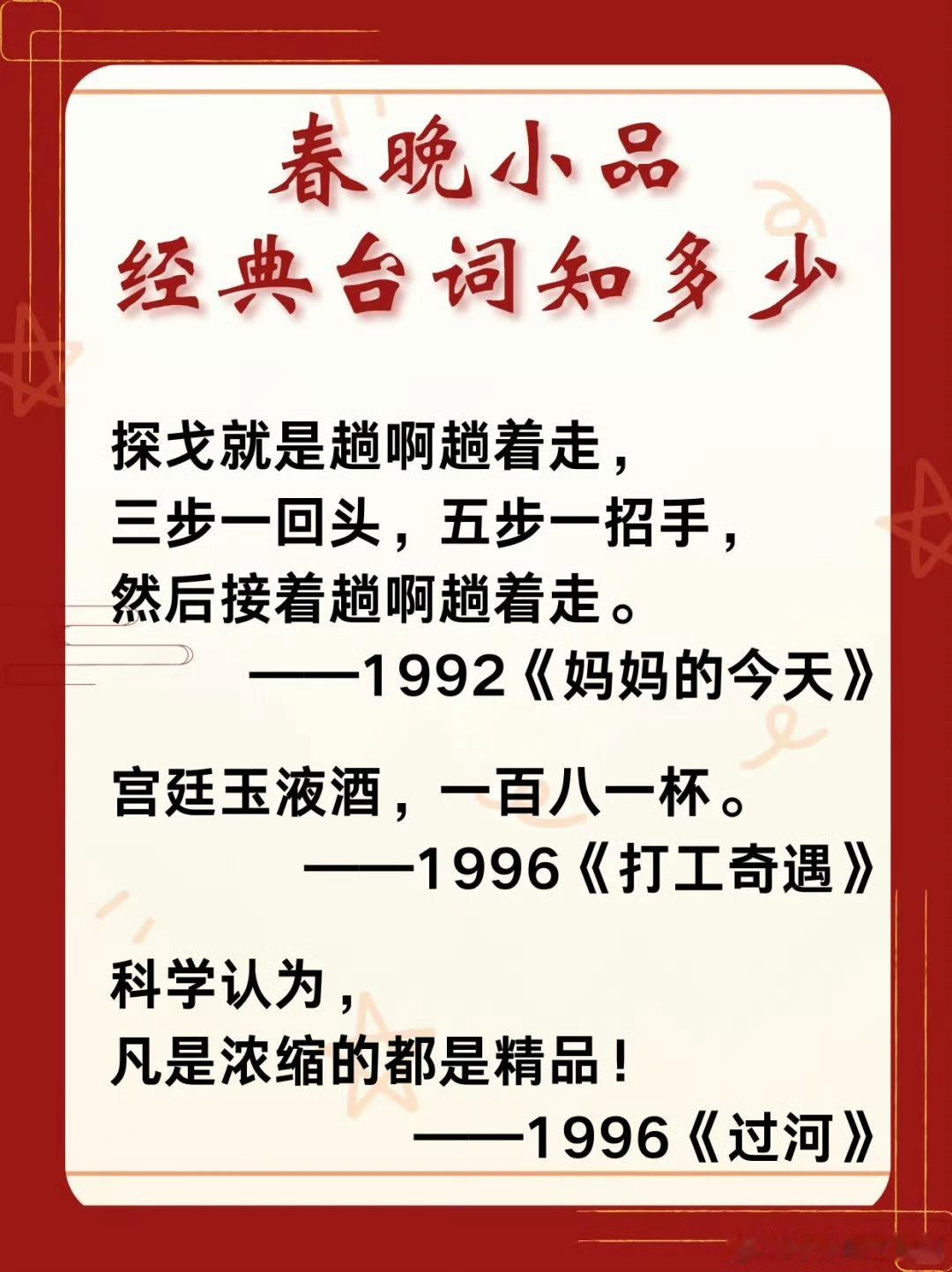 一代人有一代人的春晚神梗“宫廷玉液酒”已成国民暗号,“接着忽悠”是打工人必备台词。春晚神梗为什么能火几十年?因为每个都笑着戳中生活真相