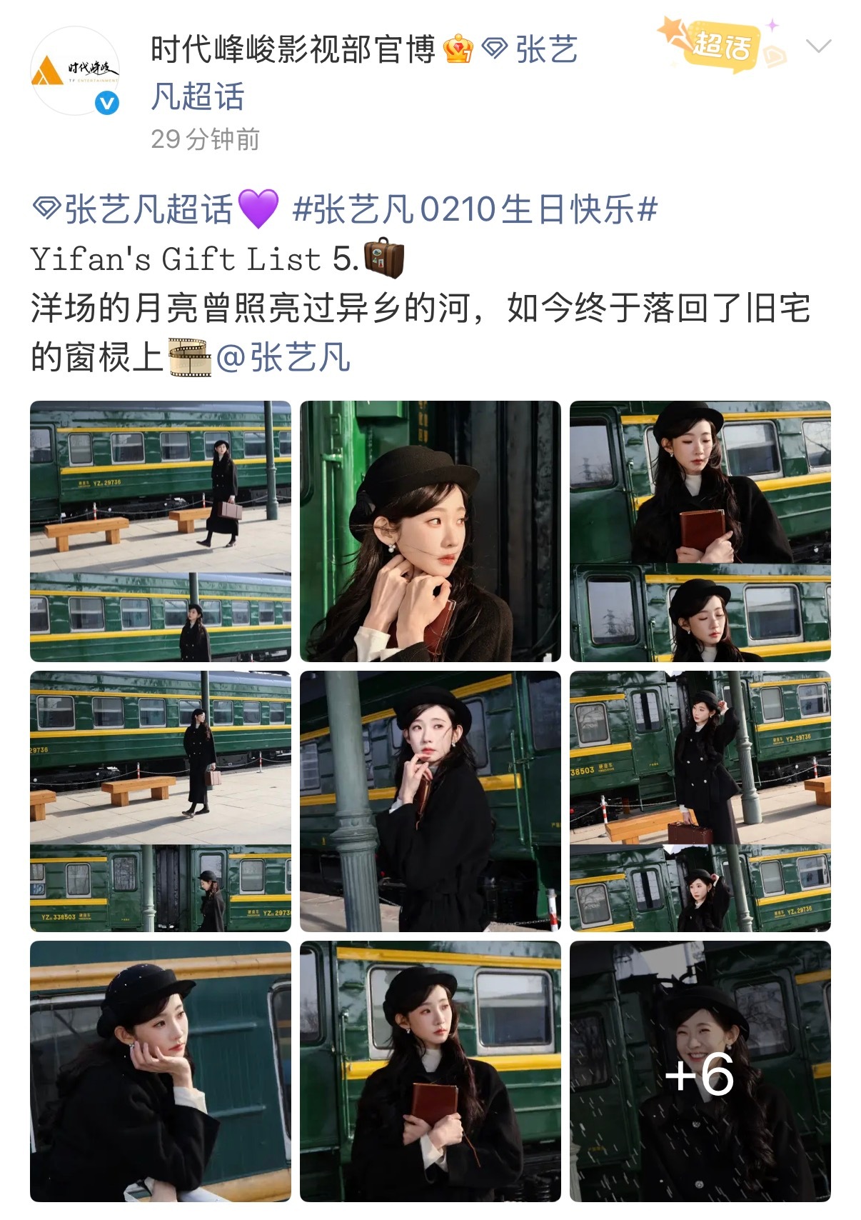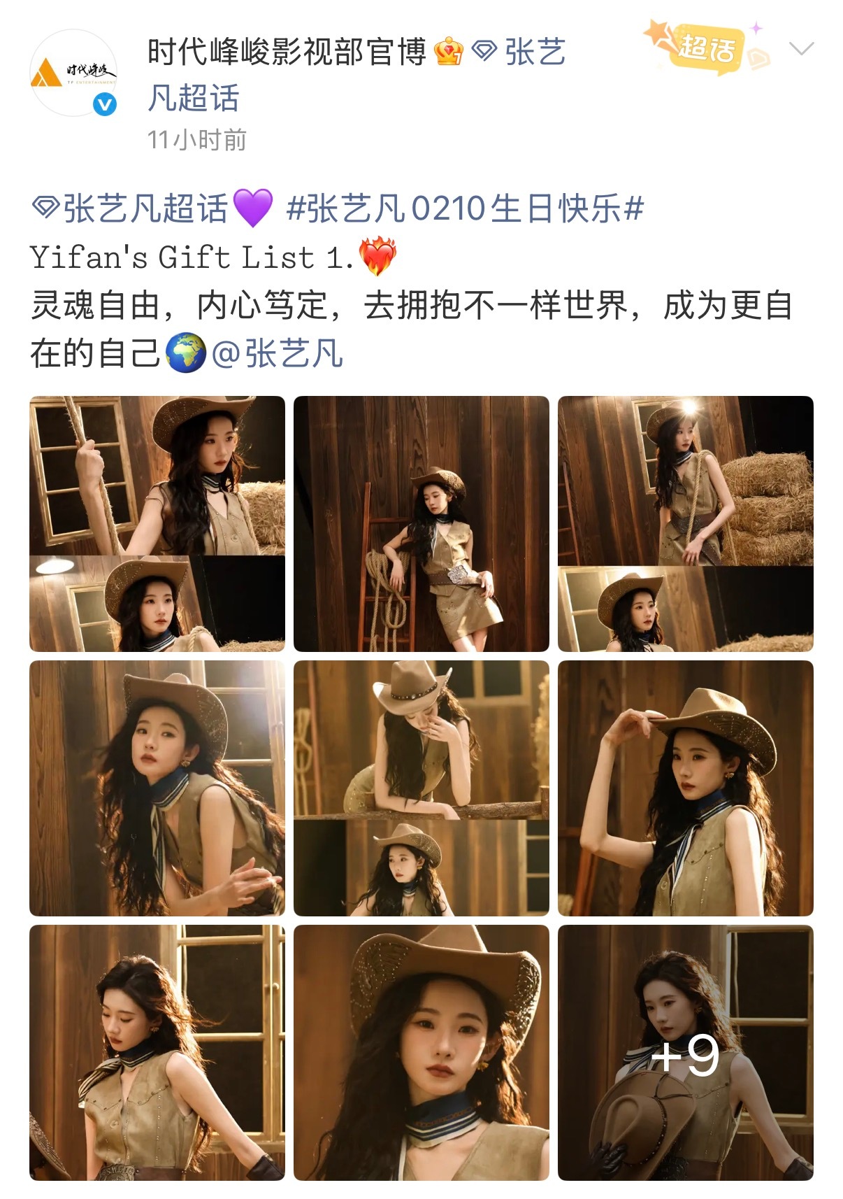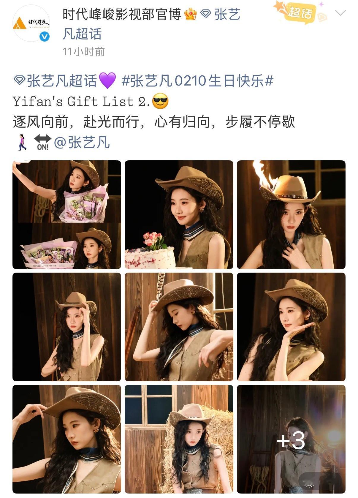 张艺凡生日时代峰峻连发七条博文为其庆生二公主的排面🈶时代峰峻连发7条博文为张艺