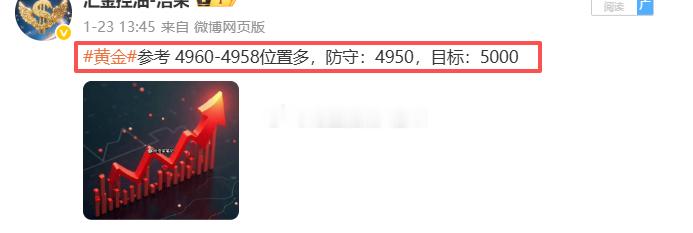 黄金4951位置多,在4959位置多单止盈80个点利润