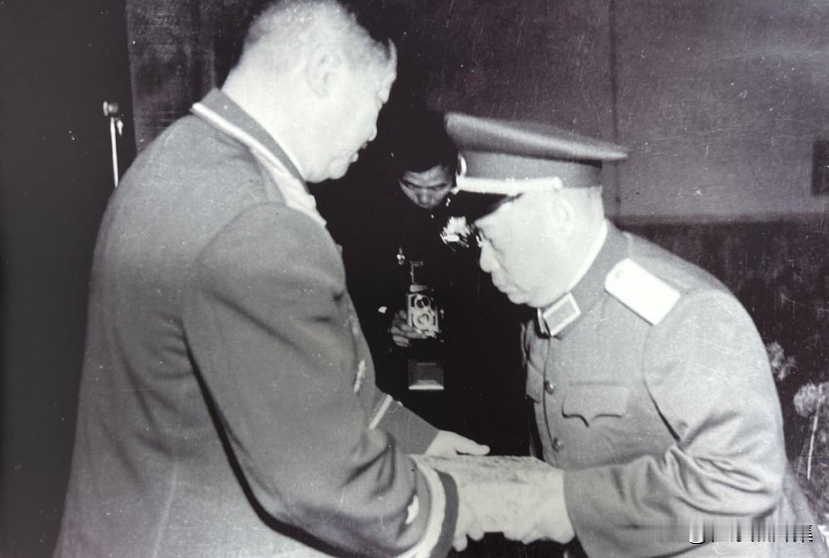 1955年12月10日,贺龙元帅代表国务院总理向成都军区司令员贺炳炎授予上将军衔和勋章的老照片。贺炳炎上将是贺龙元帅麾下大将,在战争期间共受伤11次,身上有大大小小16处伤疤,而且还失去右臂。 新中国建立后,他数病缠身,几度危及生命,组织照顾他的身体,讲他从兰州军区调到成都军区,他始终带病坚持工作,指挥平息藏区、凉山地区叛乱的战斗,口头禅是“你们去干,出了问题我负责”。 1960年7月1日,贺炳炎积劳成疾,在成都病逝,年仅47岁,成为开国上将中第一位辞世的将军,是国家民政部追认的唯一开国将军革命烈士。今天是贺炳炎上将113周年诞辰,让我们一起向开国功勋致敬!历史