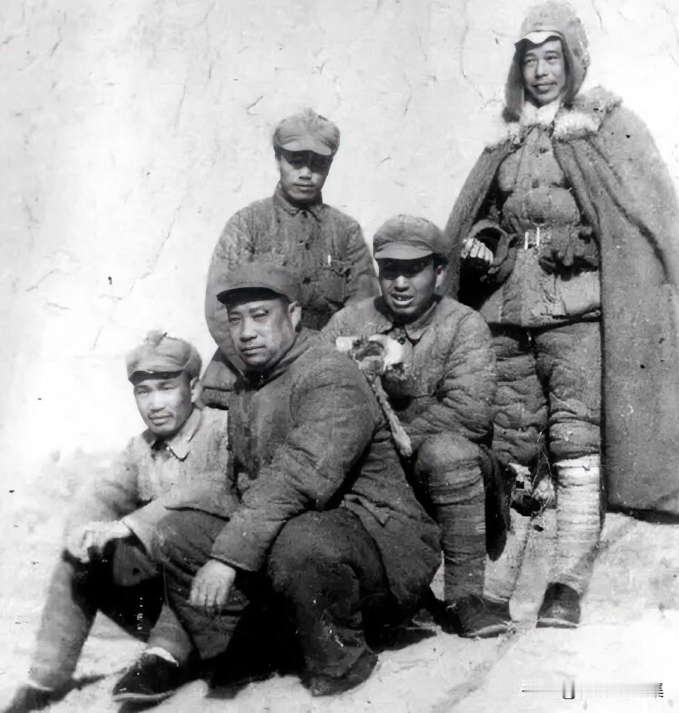 解放战争中,一纵司令员贺炳炎(左2)、政委廖汉生(右1)与战友在攻占的敌堡上留影。贺炳炎15岁参加红军,战争中失去右臂,是全军闻名的猛将。毛泽东曾握着他的左手说:“你是独臂将军,免礼!” 他指挥战斗雷厉风行,强调“部队要嗷嗷叫,要有股虎劲”。今天是贺炳炎上将113周年诞辰,向老将军致敬。