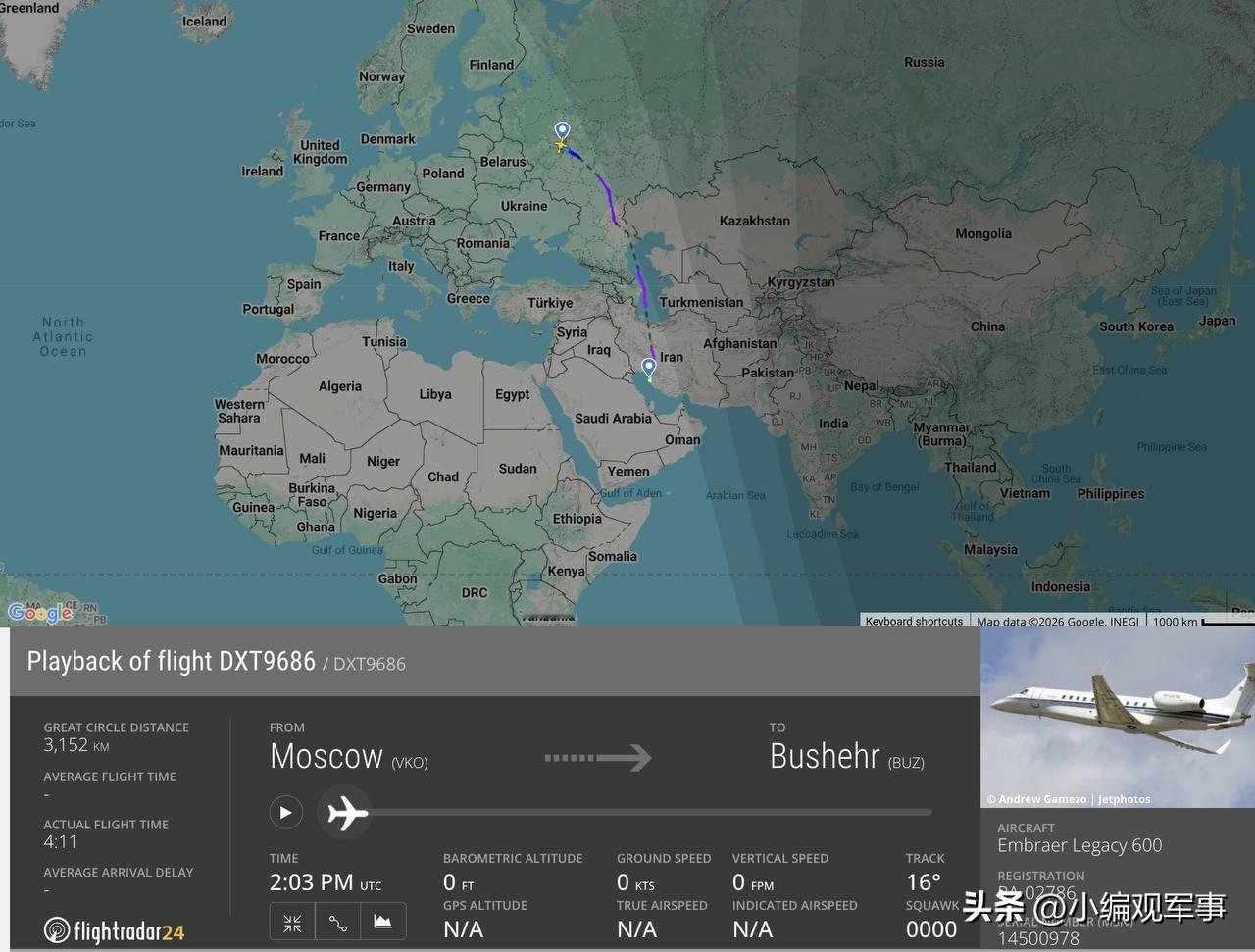 昨天,一架伊朗波音747货机从莫斯科(俄罗斯首都)降落在德黑兰(伊朗首都),另一架波音747货机则从德黑兰起飞,前往⏰某个未知目的地(图一图二)。 近几个月来,大量来自俄罗斯和⏰的军事装备已进入伊朗。 此外,一架喷气式飞机从莫斯科飞往伊朗南部的布什尔市(图三)。 布什尔是布什尔核电站的所在地,数百名俄罗斯工程师在那里工作并运营核电站。上周,俄罗斯原子能公司表示,如果有必要,他们将撤离布什尔核电站的专家。 然而,这架喷气式飞机的载客量只有13人,所以我怀疑这次飞行是作为撤离航班。 来源:Middle_East_Spectator