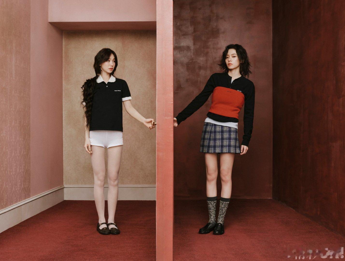 红门后藏着格纹短裙的秘密,少女指尖轻叩时光的门环 黑与红交织成时尚的诗行,每一帧都是青春最鲜活的注脚.徐梦洁王晓赟子合体首封