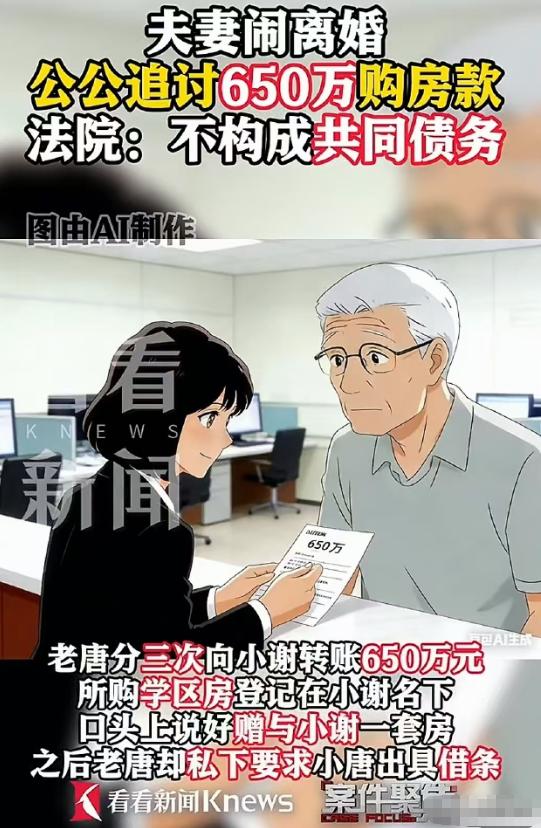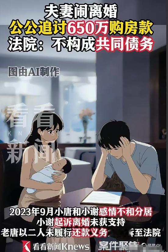 鸡飞蛋打!上海,女子结婚不久就怀了宝宝,这时却意外发现老公结过一次婚,两人大吵一架,老公怀疑她肚子里是别人的孩子。女子做了亲子鉴定,确认孩子是老公的,但她坚持要打了孩子离婚。公公为了让女子生下孩子,掏650万买了一套学区房,登记在女子名下。可孩子出生后女子还是要离婚,公公起诉儿媳和儿子,称这650万是他们向自己借的,要求他们还钱。   上海发生的一场婚姻闹剧,看完只剩唏嘘,好好的一段婚姻,怀着宝宝的喜悦,最后闹到对簿公堂,650万的学区房没留住人,孩子出生了,家也散了,从头到尾满是荒唐和无奈。 这名上海女子,和老公结婚没多久,就顺利怀上了宝宝。刚得知自己要当妈妈的那一刻,她满心都是欢喜,每天小心翼翼呵护着肚子里的小生命,憧憬着一家三口未来的幸福生活,以为自己嫁给了爱情,往后余生都会被温柔以待。 可这份满心的欢喜,并没有持续太久,一场意外的发现,彻底击碎了她所有的期待。某天,她在整理老公的个人物品时, 无意间看到了一份尘封的离婚协议书,上面清晰地写着老公的名字,还有前一段婚姻的相关信息。那一刻,她整个人都懵了,自己和老公结婚以来,对方从未提过自己结过婚,一直瞒着她这件事。 震惊过后,更多的是愤怒和委屈,她立刻找到老公对质,积压的情绪一下子爆发出来,两人爆发了激烈的争吵。 让她更心寒的是,争吵中,老公不仅没有半分愧疚和歉意,反而脱口而出,怀疑她肚子里的孩子不是自己的,觉得她是怀着别人的孩子嫁给自己,故意欺骗他。 被自己最信任的人怀疑,还被污蔑怀了别人的孩子,女子的心彻底凉透了。为了证明自己的清白,也为了堵住老公的嘴, 她不顾身体的不适,毅然决定去做亲子鉴定。等待结果的那几天,她度日如年,一边承受着怀孕的辛苦,一边忍受着老公的冷漠和猜忌。 很快,亲子鉴定结果出来了,白纸黑字清清楚楚地证明,肚子里的孩子就是老公的,女子终于洗清了自己的冤屈。 本以为真相大白后,老公会向她道歉,两人能好好沟通解决问题,可女子却早已心灰意冷,她无法原谅老公的隐婚和猜忌,坚定地提出要打掉孩子,和老公离婚。 老公得知结果后,虽有愧疚,却始终不愿意离婚,可无论他怎么劝说,女子都不为所动。这件事很快传到了公公耳朵里,公公得知儿媳要打掉自己的亲孙子、还要离婚,急得团团转,他十分看重这个未出世的孩子,一心想保住这个家。 思来想去,公公想到了一个办法,他拿出自己毕生的积蓄,凑了650万,在上海买了一套学区房,并且主动将这套房子登记在了女子的名下。 他以为,用这套价值不菲的学区房,能打动女子,让她放弃离婚的念头,安安心心地生下孩子,好好过日子。 看着公公的诚意,还有肚子里已经成型的孩子,女子犹豫过,也动摇过,可一想到老公的欺骗和猜忌,想到这段充满谎言的婚姻,她就无法说服自己妥协。 最终,她还是坚持生下了孩子,不是因为被学区房打动,而是舍不得这个小生命,可孩子出生后,她离婚的决心依旧没有改变。 女子的坚持,彻底惹怒了公公。公公觉得,自己掏650万买学区房,本来就是为了让女子留下,保住这个家,如今孩子已经出生,女子却还是要离婚,相当于欺骗了自己的一片心意,也浪费了自己的650万。 气急之下,公公直接向法院提起了诉讼,将儿媳和儿子一同告上了法庭。诉讼中,公公声称,当初拿出的650万,并不是无偿赠与,而是借给儿子和儿媳的,现在要求两人共同偿还这650万欠款,并且提供了相关的转账记录作为证据。 如今,这场纠纷还在等待法院的进一步审理,至于最终的结果如何,目前还不得而知。但这段婚姻的结局,早已注定是两败俱伤,留给三个人的,只有无尽的遗憾和麻烦,还有那个刚出生就要面临父母离异的孩子。 对此,你们有什么看法,欢迎评论留言~