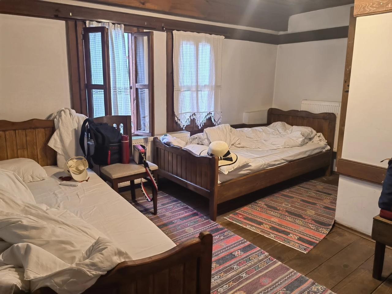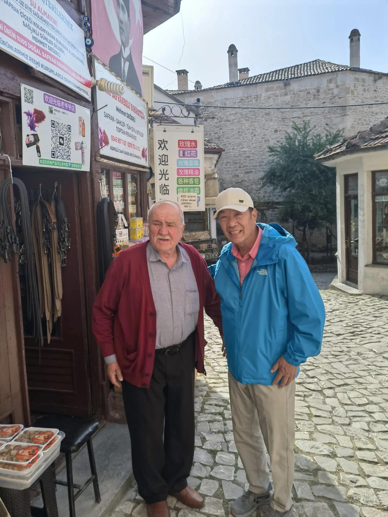 土耳其旅游第十天,世界文化遗产,番红花城,我们是特意选择有番红花城和首都安卡拉这趟线路的,虽然辛苦只有两段内陆飞,但可以住番红花城想想也值得了,当地导游带我们走整个古城的主要景点, 老城区鄂图曼时期的房屋和建筑都被完整的保留下来,包括私人博物馆、清真寺、历史喷泉、土耳其浴、中塔、日晷以及数以百计的房屋……由于全城被列入世界文化遗产,所以找不到现代化建筑。 在这里我们居住的是民宿,由于房间格局不同,我们自然是抽签选择房屋,我运气依然不错,抽了一个二楼,挺好的。 今早刚好是网红土耳其老爷爷,接待我们,热情的老爷爷给我们换了玫瑰花水,还特意回店里找出土耳其🇹🇷和中国🇨🇳,让我们和他合影。