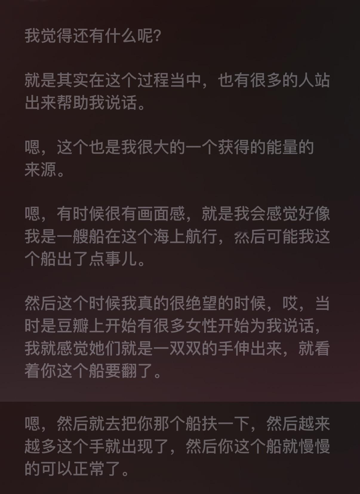 另一个原因是因为豆瓣很多女生帮她说话她都感到很意外,怎么会有陌生人仅仅是因为我们同为女性就愿意帮她,甚至帮她说话都会被骂“你也是麦琳那种人吧”,但是她们还是伸出了援手