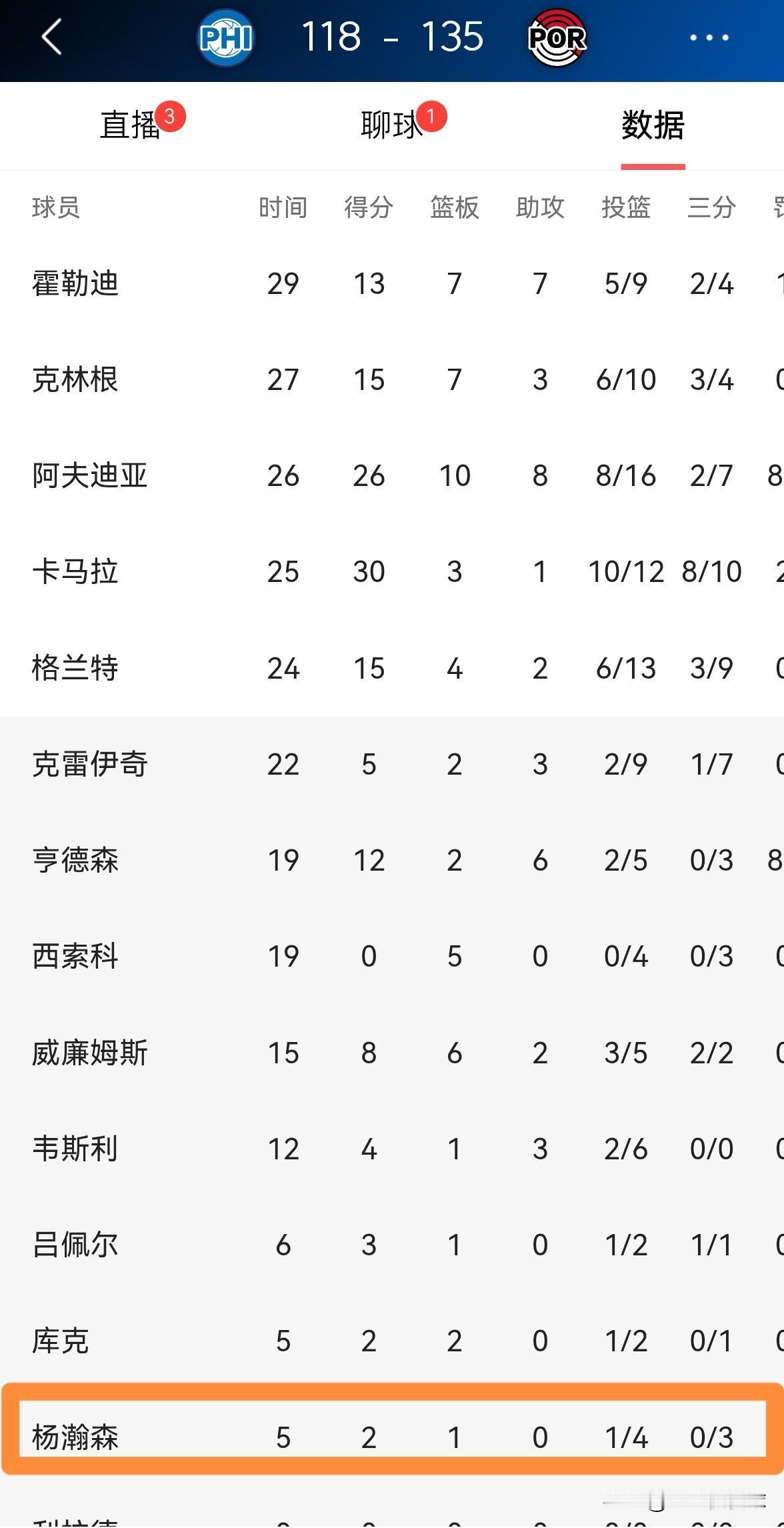 我真的要好好感谢开拓者主帅斯普利特!在今天开拓者主场以135:118大胜76人的比赛中,杨瀚森替补出战5分钟得到2分1篮板1失误2犯规。虽然本场比赛杨瀚森再次出现了低级失误和无脑犯规,但是斯普利特教练并没有将杨瀚森替换下场,而是给予了杨瀚森更多的宽容和信任。仅凭这一点,我就要好好的感谢斯普利特教练,谢谢斯普利特教练给了杨瀚森更多的锻炼机会。