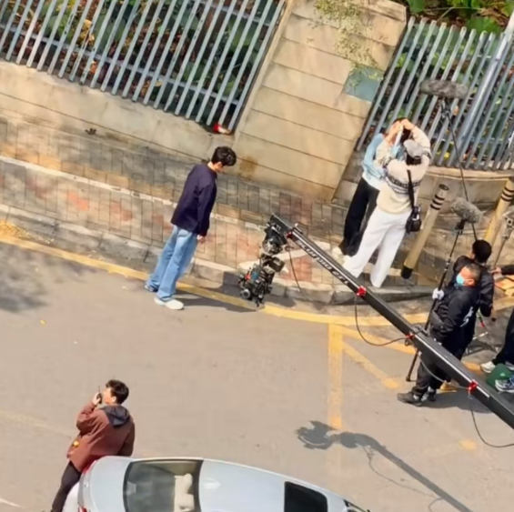因为一直待在太阳底下,导致对手女演员隔一会就要补妆一次