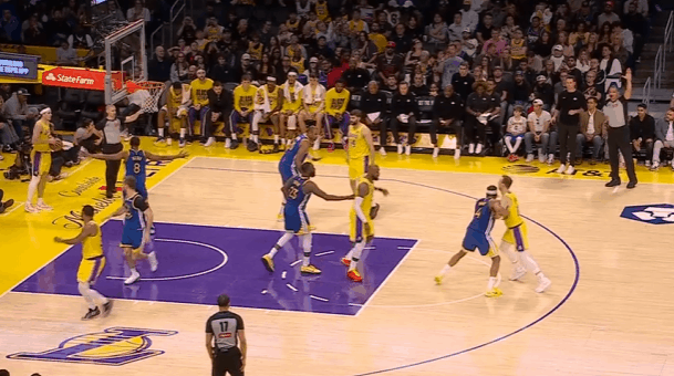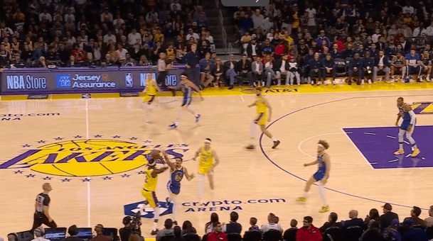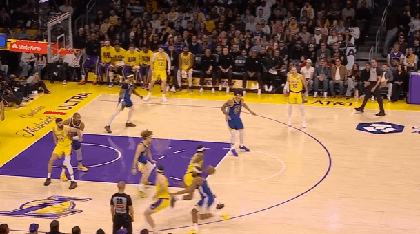 P5转换进攻湖人前场3打2,佩顿兼顾底角、篮下一防二。肯纳德右侧底角接里弗斯传球吸引双人扑防后,迅速中转给篮下空位的范德比尔特,助其扣空篮得手。