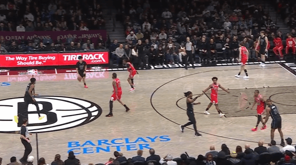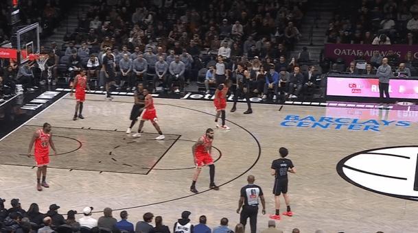 P1克拉克斯顿中圈位置借特拉奥雷手递手传球,持球行进至左翼后直接启动突破冲击,凭借速度摆脱理查兹杀入篮下后上篮打成2+1。