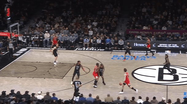 P5克拉克斯顿拖车跟进至弧顶获得完全空档,接队友传球后三分坚决出手,空心入网。