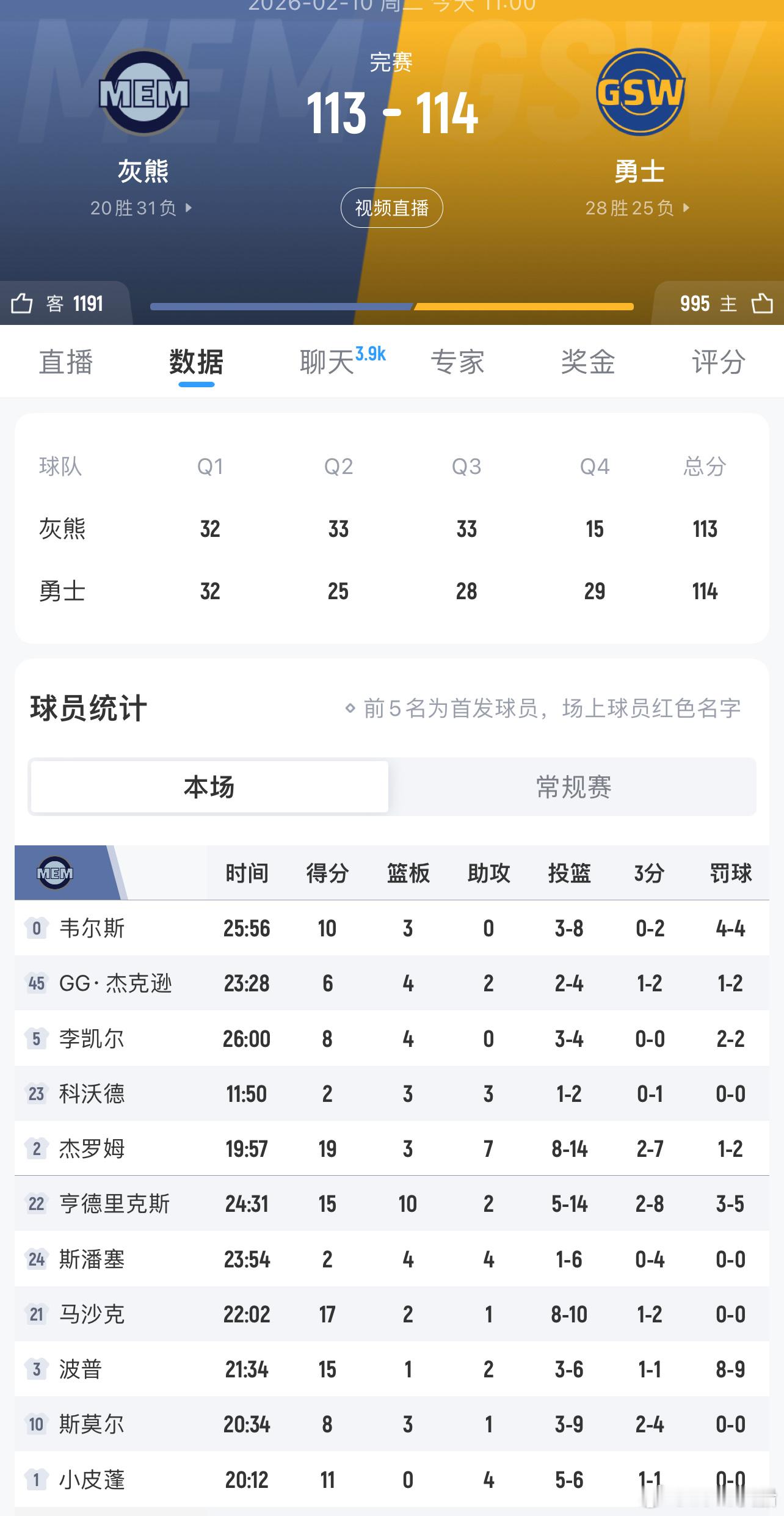 灰熊最后被勇士打了一波15比29,最后4分钟灰熊没有得分,直接被一波11比0带走!!