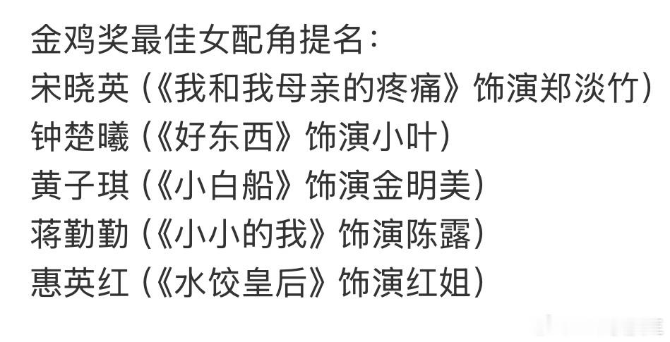 《酱园弄》里的杨幂、赵丽颖连续无缘金鸡奖、金像奖两大主流奖的最佳女配角提名。