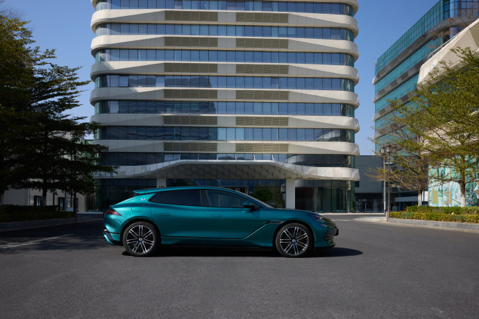 除了新内饰,还有新的外观配色,今年流行绿色,小米YU7,智界R7都有绿色,腾势这个颜色和智界R7的有点像,但是姿态更运动一些。毕竟是猎装车。