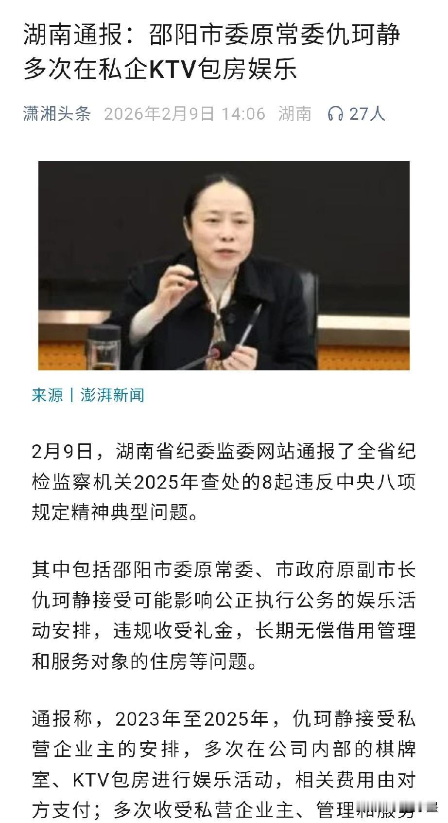 接受企业老板安排,在其内部棋牌室打牌,KTV包房唱歌娱乐,仇珂静把娱乐消遣当成了上班工作! 仇珂静21岁便参加工作,到56岁主动交代问题,她已工作了35年,这期间她从一名普通的乡镇社教队队员,经过不断努力,最终成为了一名地级市副职干部! 在自身级别不断提升的过程中,她的初心也悄然发生了改变,收受别人钱物,接受宴请在她看来已经成了理所应当,她还长期无偿借用别人名下房产供自己居住,甚至在工作期间多次到企业老板安排的棋牌室、KTV娱乐消遣! 最后,她也许是良心发现,也许是担心东窗事发,在56岁时选择主动交代问题,从此结束了自己的职业生涯!