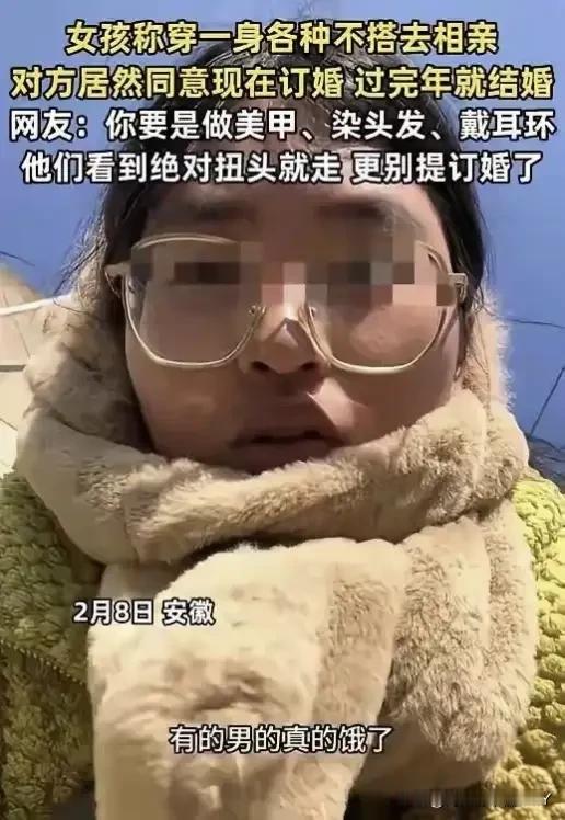 安徽一女子,过年回了老家,被家里人催着相亲。她本就没打算结婚,为了让男方知难而退,特意往丑了打扮。 穿一身土气的衣裳,头发胡乱扎着,脸上也没施粉黛,怎么看都透着股“敷衍”。原以为这副模样,男方见了保准会嫌弃,没成想,对方坐下来聊了没几句,竟然直接说要订婚。 女子事后哭笑不得,心里直犯嘀咕:有些男的,是真急着找个人结婚啊。回到家,她越想越觉得离谱。自己明明刻意往普通、邋遢里收拾,半点没打算给对方留好印象,怎么反而成了“合适”的人选? 她的计划原本很简单:让男方看不上自己,顺理成章拒绝家里的安排,往后也能少些催婚的唠叨。可现实偏不按剧本走,男方不仅没露出半分嫌弃,反倒热情得很,张口就是订婚,这让她一时语塞,不知道该接什么话。 亲戚们听说了这事,一个个都跟着起哄。“多好的小伙子啊,人家不挑你,你还犹豫啥?”“看着就般配,赶紧答应了吧,别再挑三拣四的。”你一言我一语,说得好像她不点头就是天大的过错。 可女子心里清楚,自己不是挑剔,是真的不想随便把自己嫁了。婚姻这回事,在她看来,该是两个人情投意合,慢慢了解,而非为了应付家人就委屈自己。 她实在想不明白,为什么在有些人眼里,结婚成了件这么“简单”的事?不需要感情基础,不需要彼此了解,仿佛见一面、看对眼(或者说,只要不讨厌),就能定下来过一辈子。 男方那股急切的劲儿,在她看来,哪里是真心喜欢,更像是在完成一项任务——管对方是谁,只要是个女的,愿意结婚,就行。这种不管不顾的态度,没让她觉得被重视,反倒更添了几分抗拒,也让她更坚定了“不将就”的想法。 老家的相亲环境,向来如此。仿佛到了年纪,就必须把自己“嫁出去”或“娶进门”,没人太在意当事人愿不愿意,开不开心。长辈们挂在嘴边的,总是“差不多就行了”“哪有那么多顺心如意的”“我们都是这么过来的”。 可时代不一样了,年轻人心里的想法,早已不是“搭伙过日子”那么简单。他们想要的,是精神上的契合,是“我愿意”,而非“不得不”。女子的遭遇,听起来有点好笑,细想之下却满是无奈。 这何尝不是许多年轻人面对催婚时的缩影?一边想坚持自己的想法,守住心里的那份期待;一边又被亲情裹挟,被世俗眼光审视。拒绝吧,怕伤了父母的心,落个“不孝”的名声;答应吧,又怕委屈了自己,往后的日子过得一地鸡毛。 老话说“强扭的瓜不甜”,婚姻更是如此。若只是为了应付外界的压力,把两个不相爱的人绑在一起,日子久了,难免生怨。那些催婚的长辈,或许是出于好意,怕孩子“剩下”,怕老了没人照顾,可忽略了“幸福”的前提,是“心甘情愿”。 女子最后还是拒绝了男方,她说,宁愿多等几年,也不想为了结婚而结婚。这份坚持,或许会让她暂时面对更多的唠叨和不解,但至少,她守住了自己的底线。 其实,婚姻从来不该是“到点交卷”的任务。每个人都有选择自己生活方式的权利,有人向往柴米油盐的安稳,有人偏爱独来独往的自由,没有对错,只有适合与否。 愿每个被催婚的年轻人,都能守住自己的节奏,也愿身边的人,能多些理解和尊重——毕竟,日子是自己过的,开不开心,只有自己知道。