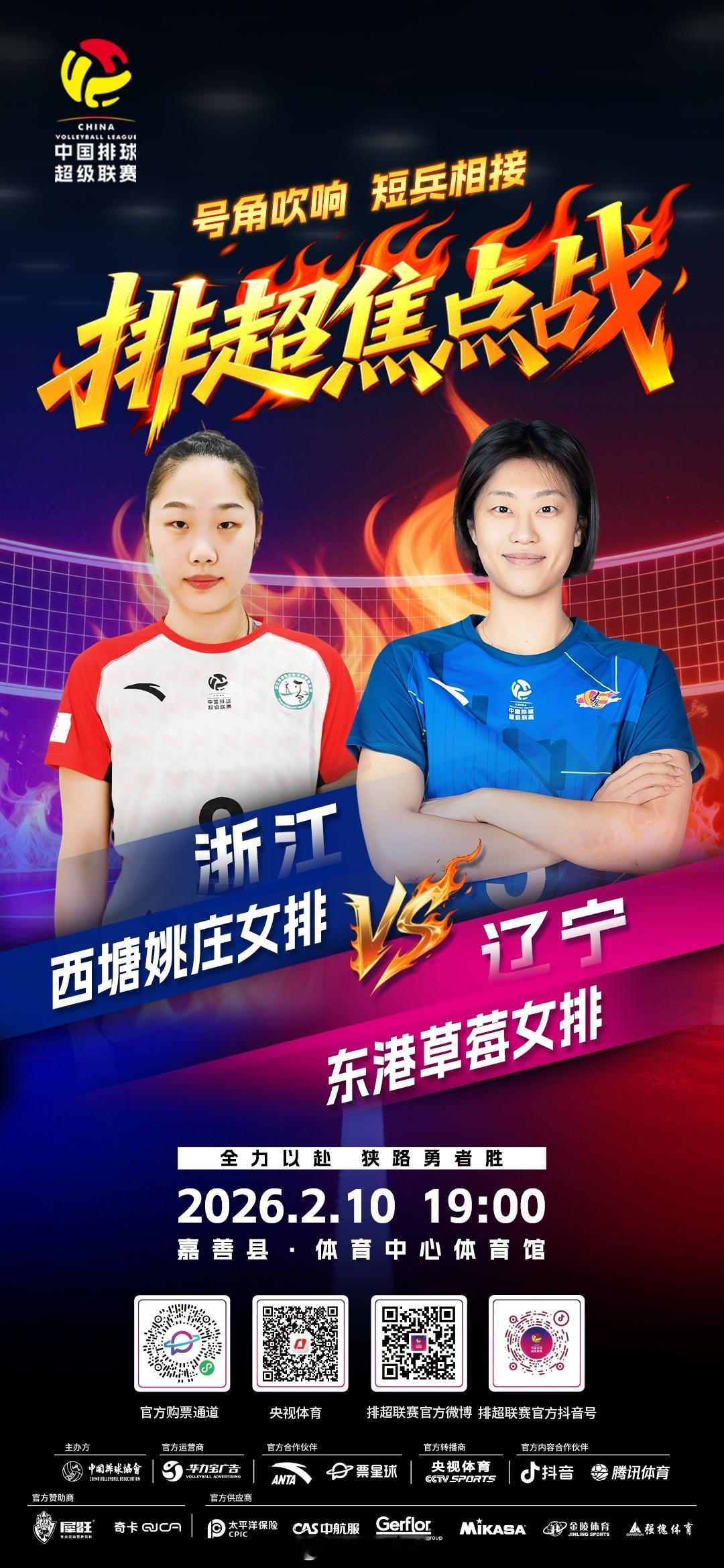 2025-2026中国女排超级联赛 赛中升降赛次回合焦点战,今晚19:00,浙江西塘姚庄将在主场迎战辽宁东港草莓。