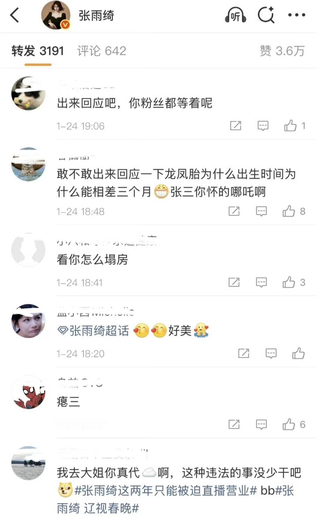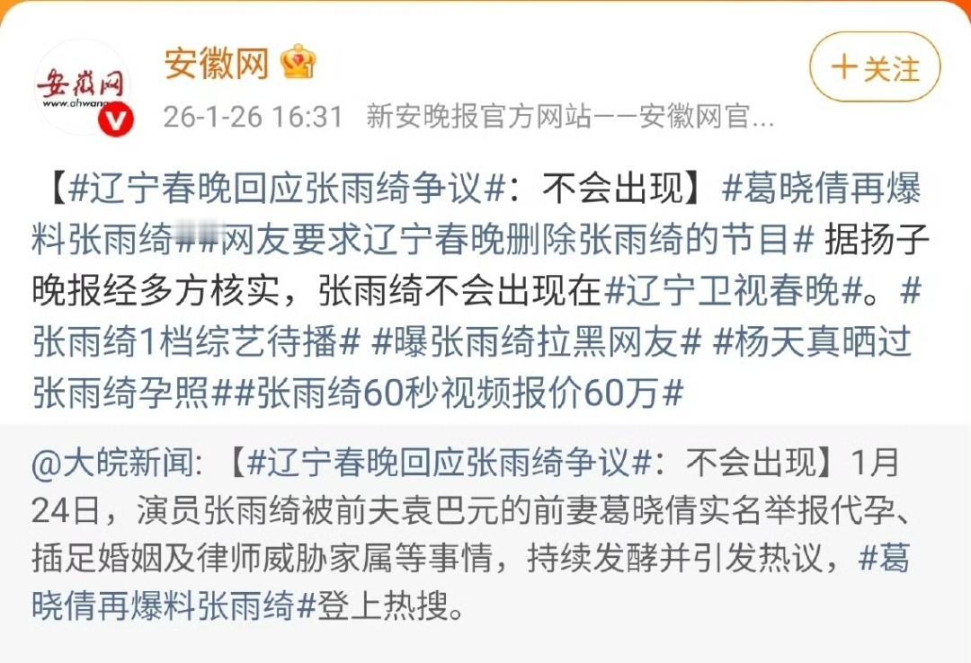 此前参与彩排、白发造型刷屏的张雨绮,直接被彻底除名。 此前张雨绮被袁巴元前妻葛晓倩实名举报,不仅涉嫌代孕、插足他人婚姻,还被指指使律师匿名威胁对方。 葛晓倩晒出铁证,两个孩子出生仅间隔3个月,完全违背正常妊娠周期。 还曝出张雨绮在其未离婚时频繁出入住所。 面对种种实锤指控,张雨绮方始终沉默不语。 不回应、不澄清,一味逃避只会让嫌疑越来越重。 如今被辽视春晚除名,只是她事业受挫的开始。 违法失德本就零容忍,沉默根本不是挡箭牌! 劣迹艺人就该被抵制,坐等官方彻底定性,还公众一个交代。
