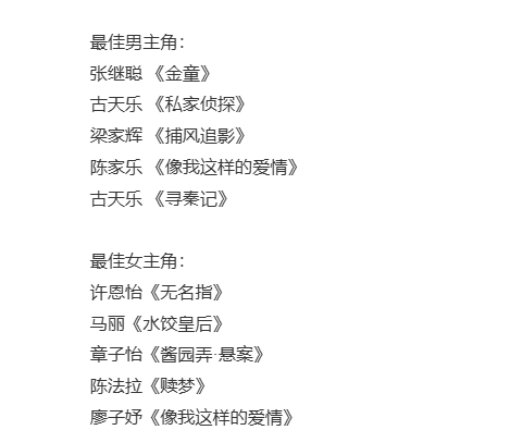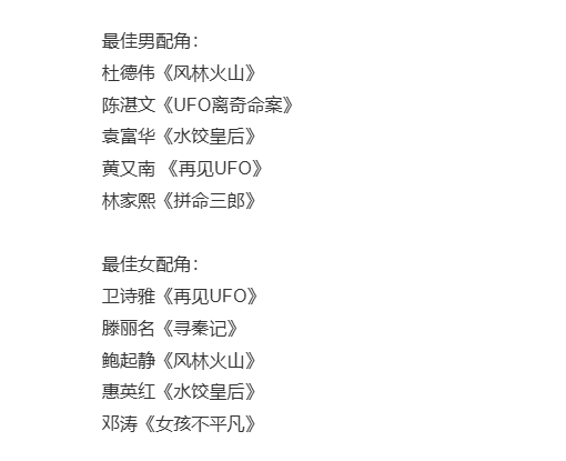 其次是电影《水饺皇后剧》入围三项大奖,最佳女主,最男配女配。