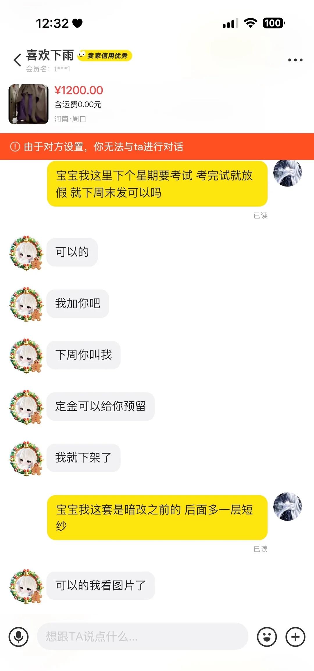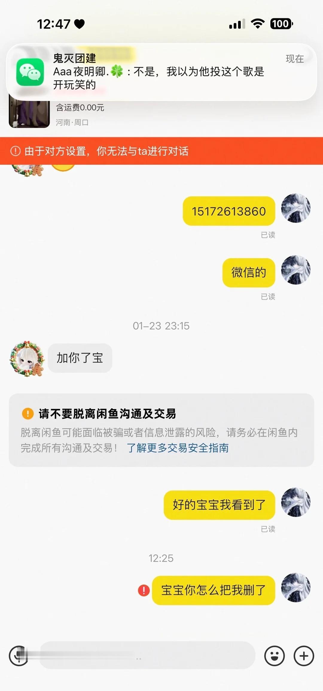 一个骗子的闲鱼叫骗子替我挡灾 招笑不❗️ 起因是我找她换物 我用大乔挚爱花嫁的这一套换她小舞的神装cos 她说要补差我同意了 我跟他说我要期末考试考完了才能跟她换给她发货 她也答应了 后面我要跟她换的时候我给她拍了状态图给她发了货单号也给她了 她也没给我发货只是给我拍了一个箱子的照片 不过上面的信息遮的严严实实的 我还是比较相信她 结果到了发货第二天 我忘记寄手捧花和鞋子了 我说再寄给她 结果这个神人说不用寄了不想分两次拿 其实到这个时候我就有点怀疑了 我换的大全套 她咋可能只要我的衣服和假发 但是我也没多想什么 因为她都给我看发货照片了只不过信息都被遮了 结果后面我问她发货没人家直接给我拉黑了 我的妈呀 然后我又去咸鱼找她 小妞精的很把我咸鱼也拉黑了 人家咸鱼名字还叫马扁子替我挡灾 自己就是个骗子还起这名字招不招笑啊大姐 干脆你把我这辈子的灾全挡了吧 她主页还有一条互借 估计是她中途不想跟我互换了跟别人互借去了 那张发货照片估计就是她准备跟别人互借发货的照片 结果她不仅互借到了 还骗到了互换的100多块钱和cos服 这家伙尽收渔翁之利 我反正今天下午要把快递拦截了但一百块钱我肯定不管用什么方法还是要拿回来的网络交易需谨慎 挂那些让人无语的