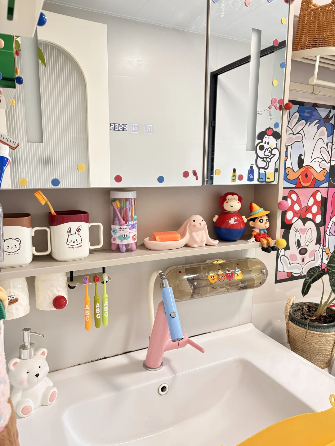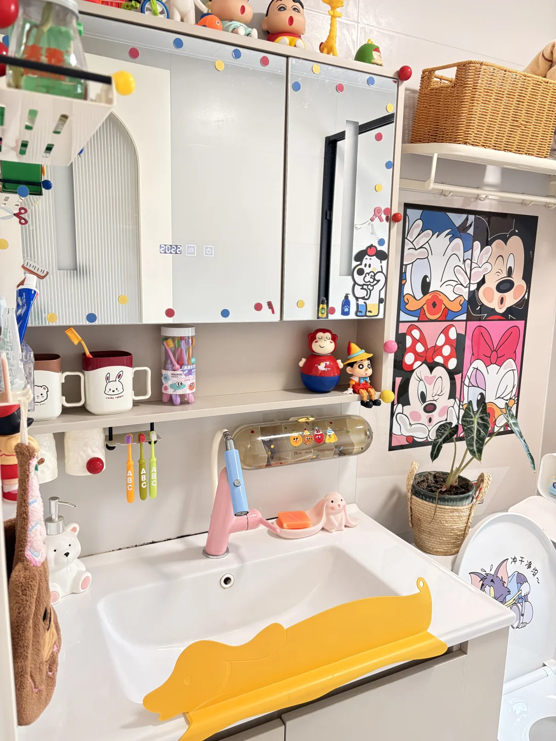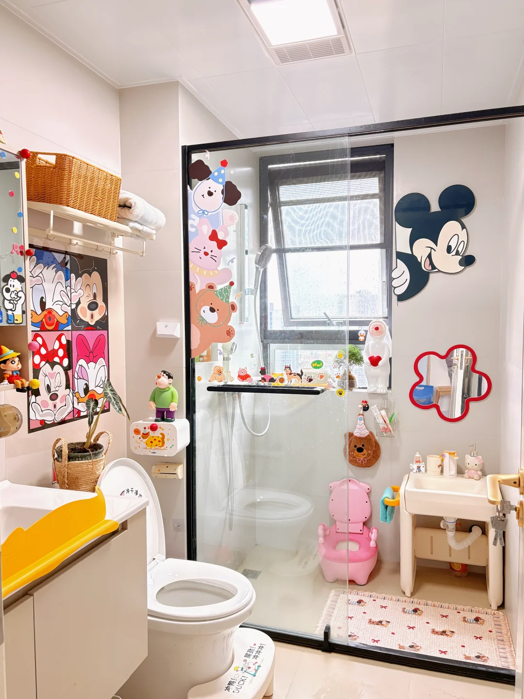 如今94年的我,来自小城,小时候父母的育儿理念就是吃饱穿暖,父母忙忙碌碌缺少陪伴,长大后才发现周围被从小精神富养的女孩无论做什么都非常自信,熠熠闪光✨ 长大后,结婚生子, 家里两个娃,总想把自己童年没有的都给孩子…… 家里两个女孩,花小钱买了贴纸,把家里卫生间改成了多巴胺色彩……女鹅真的好喜欢😻 但愿以后回忆起来,整个童年都是彩色的🌈