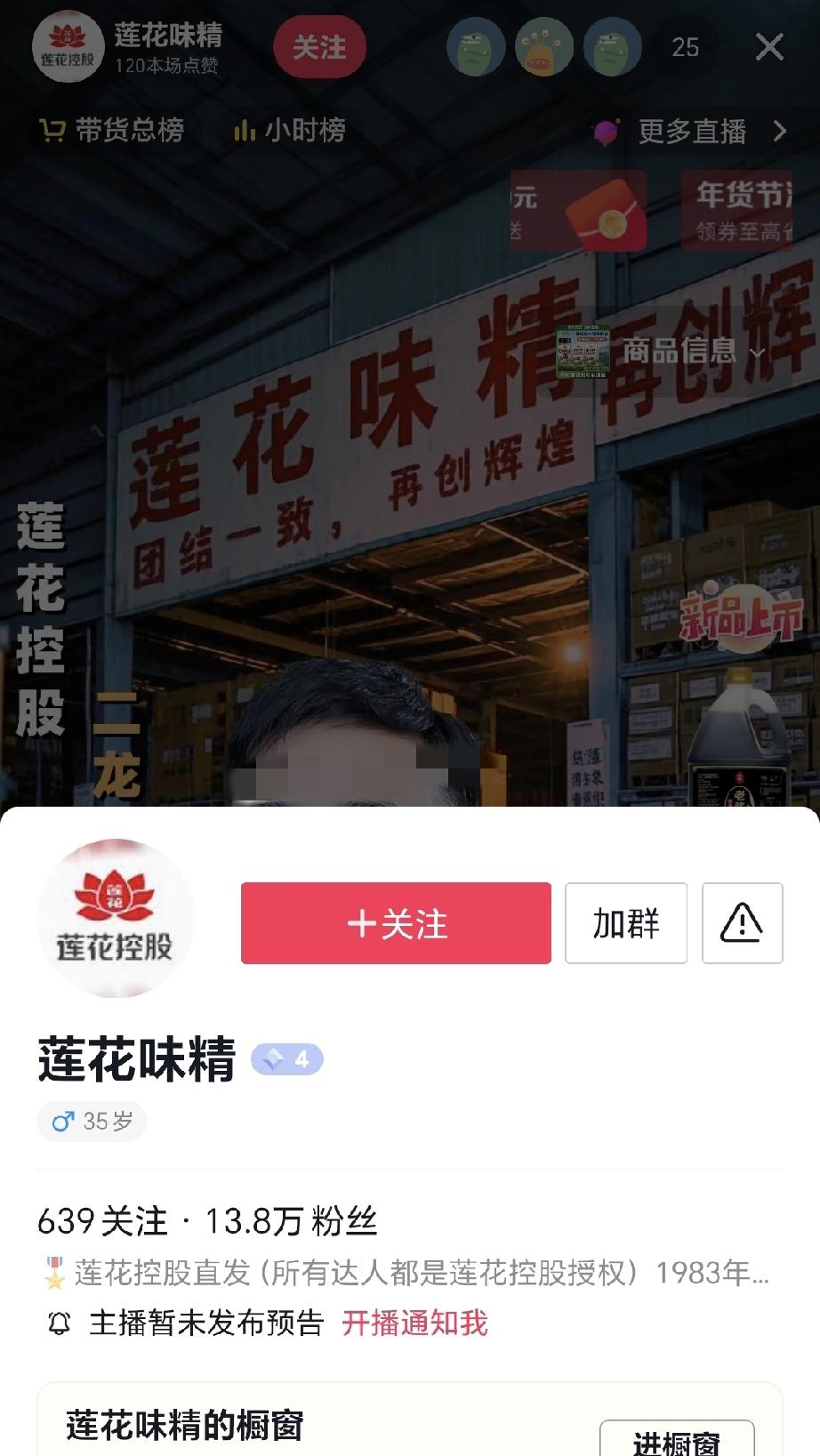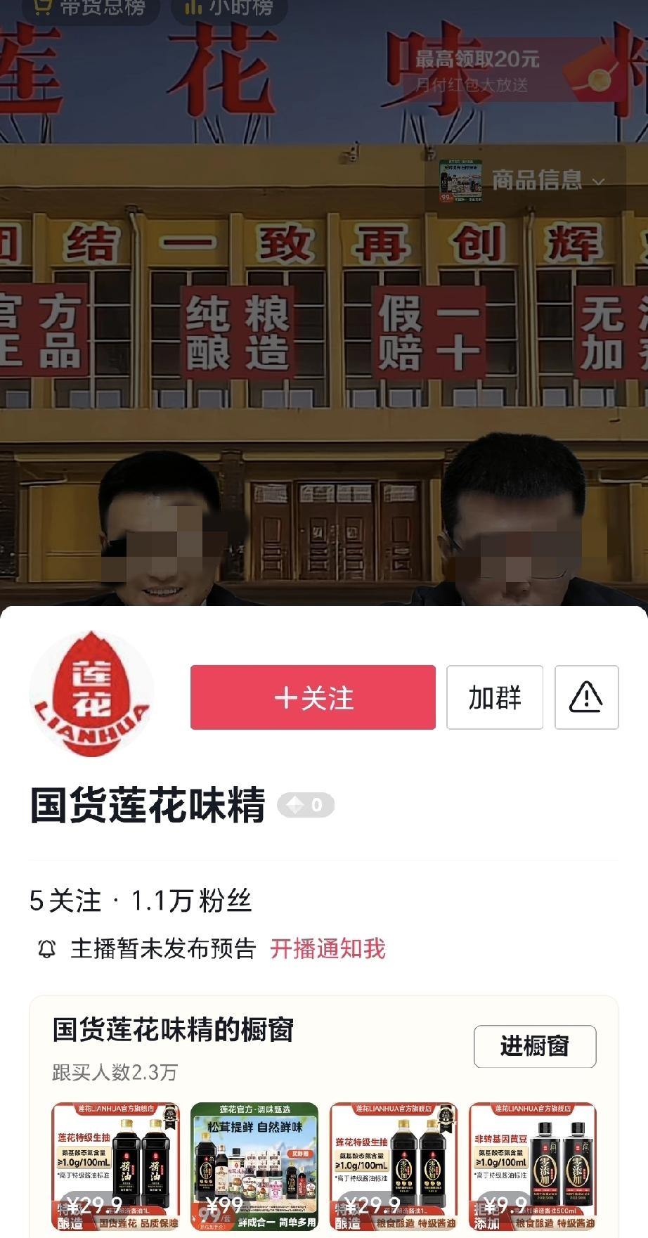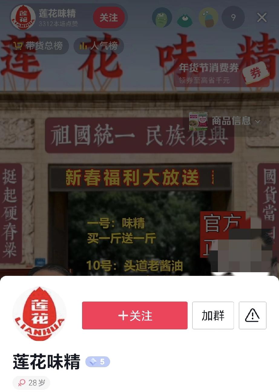 莲花味精怎么了? 近段时间,可能是春节临近的原因吧,无论是在头条还是抖音,莲花味精的直播,几乎到了霸屏的程度。 原本我也想着买几包味精的,但看到这到处都是莲花味精直播间的“盛况”,实在是不敢下手了。我试着在几家直播间问了问他们和莲花的关系,但只有“莲花LlANHUA官方旗舰店”说是厂家的,其他那些打着“莲花味精厂”、“国货莲花味精”、“国货莲花味精厂”“莲花味精”……没有一家回答我的疑问的。这些直播间尽管有男有女、有老有少,但都打着莲花味精的牌子在卖货,有的还用莲花味精厂的厂区背景,似乎也在向外界传递着自己莲花味精的身份正统。不过,从这些直播间心虚的表现来看,应该不是莲花味精厂家的直播间,而是打着“莲花味精”旗号的冒牌货。 莲花味精曾经历过被舆论裹挟的艰难岁月,现在在国人对国货支持的大好形势下,莲花味精也有了很好的发展环境,但若不珍惜当下的大好局面,任由一些滥竽充数的假冒直播间,打着“莲花味精”的旗号蒙骗消费者,那么,也许用不了太长的时间,莲花就会失去这难得的发展机会。 只是希望莲花能够真正重视起当下莲花直播的乱象,别等到无法收拾了,才去想办法治理,真到了那时,恐怕也就来不及了!