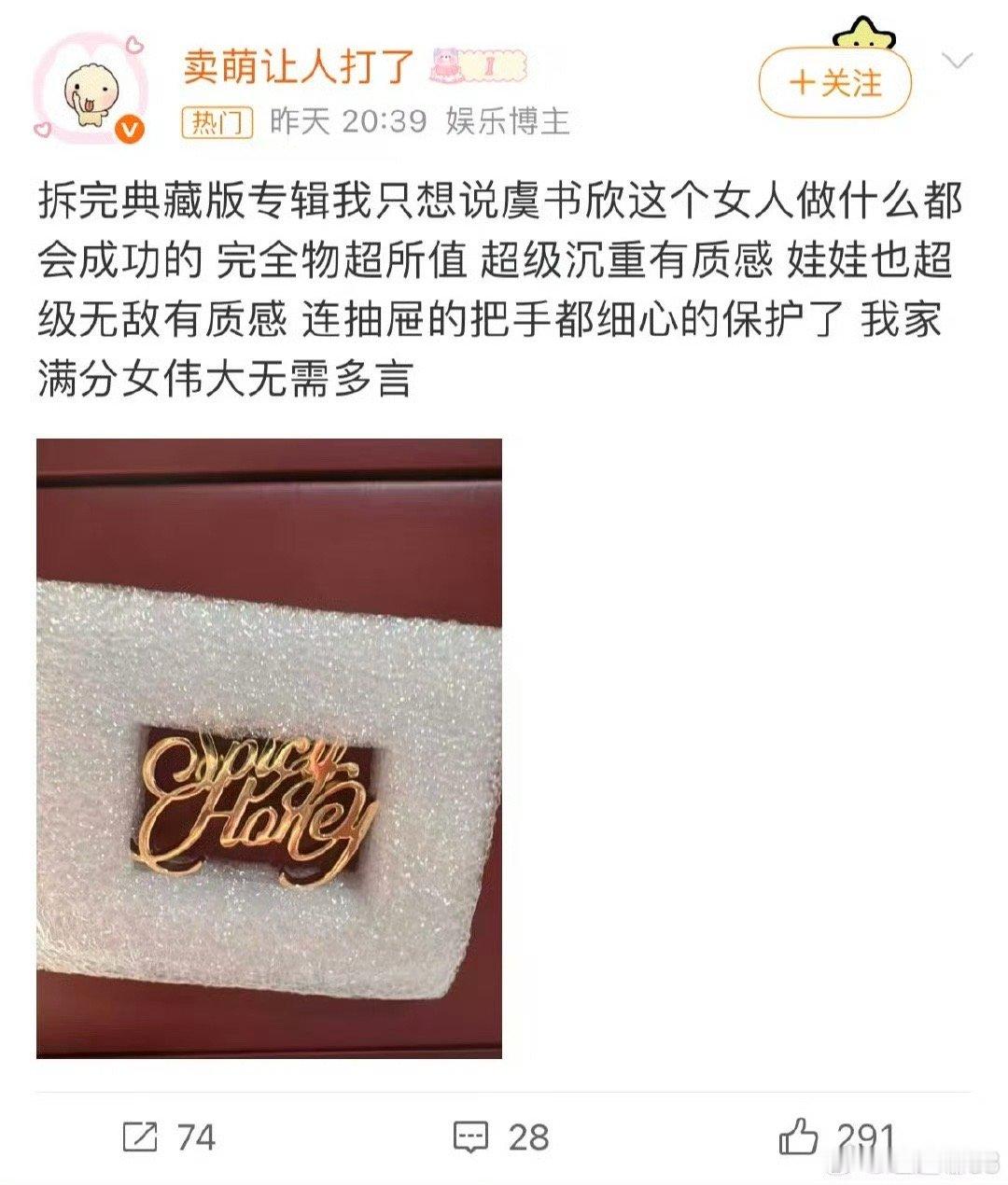 拿到虞书欣新专的我太得劲了 谁说专辑只有听?虞书欣新专直接开启“实体惊喜模式”!除了标配,那个以她为原型的娃娃简直是神来之笔,mini欣欣可爱到想立刻拥有。这波操作,审美在线,诚意满分,拿到手真的很难不得劲!
