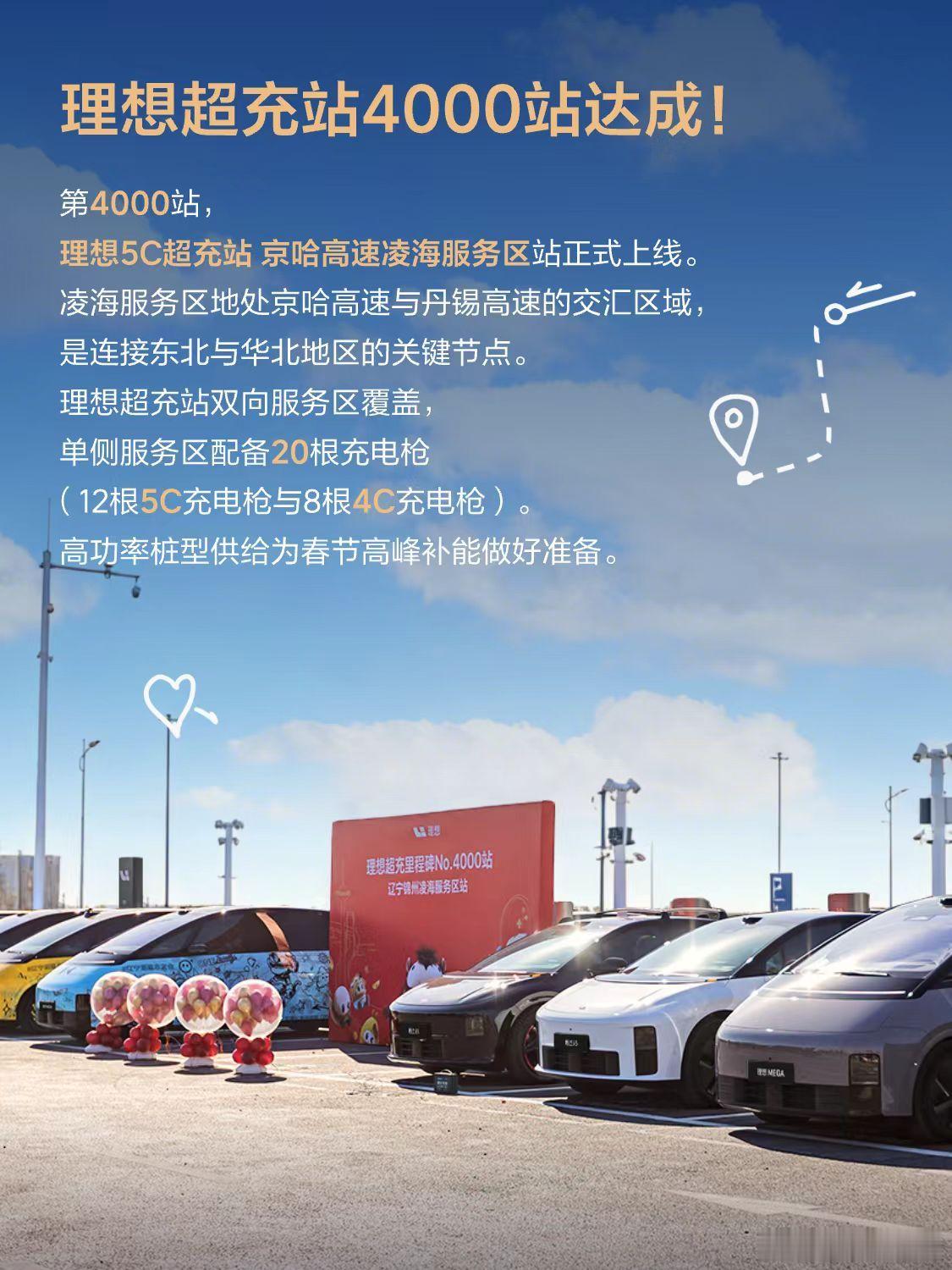 理想超充第4000站有点猛,辽宁京哈高速上凌海服务区里单侧20把枪,双侧合起来4