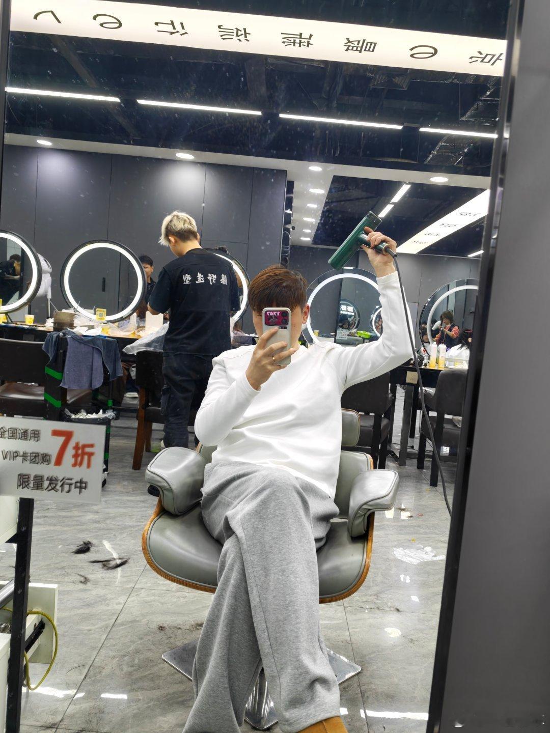 剪完了我让tony去忙,我自己吹头发你们猜现在剪一次头多少钱? 武汉·万达广场(经开店)