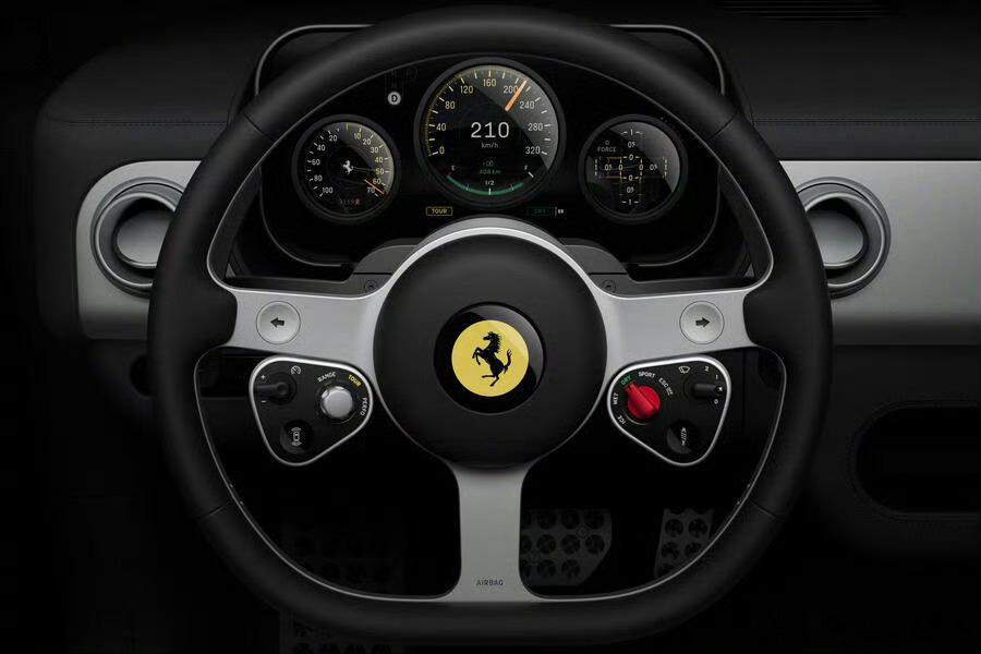 法拉利首款纯电车型内饰曝光法拉利首台纯电跑车LUCE 意大利语是“光”设计过iPhone、iMac和iPod多款产品的设计界传奇——乔纳森伊夫深度参与设计这台车设计浓浓的复古科技风比如灵感来自F1的实体按键,还有致敬 50 年代经典 Nardi 风格的三辐方向盘,以及三款屏幕。据说会用到四电机,马力过千匹,车重2.3吨,零百加速2.5秒,极速超过310km/h。具体信息还是等5月发布的时候