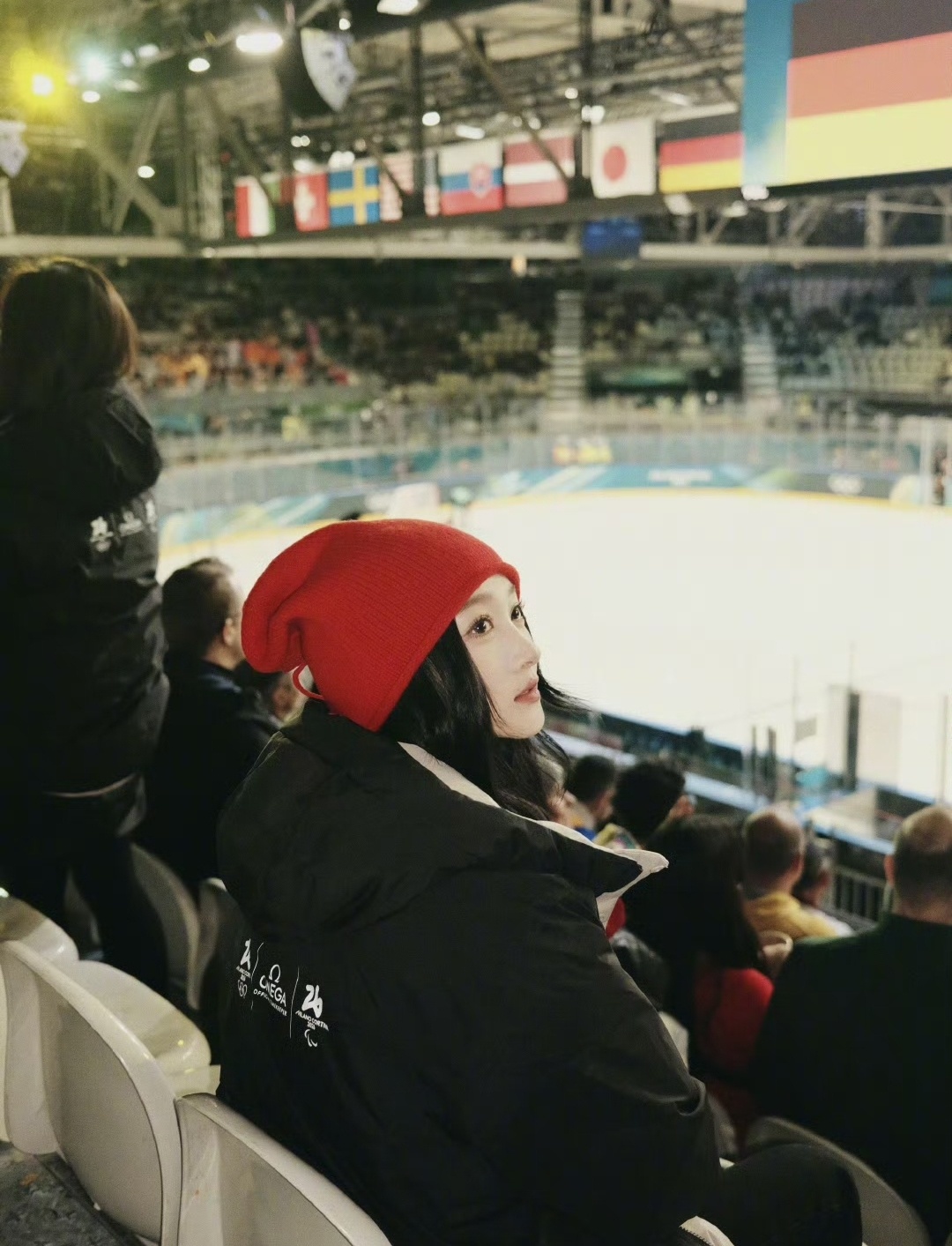红毛线帽一戴,素颜状态都能打,对着镜头比耶甜到犯规,不愧是国民闺女,颜值在线。不过我看了一下,整张照片里连鹿晗的影子都没瞅见,看样子应该是自己出国,没跟鹿晗在一起。