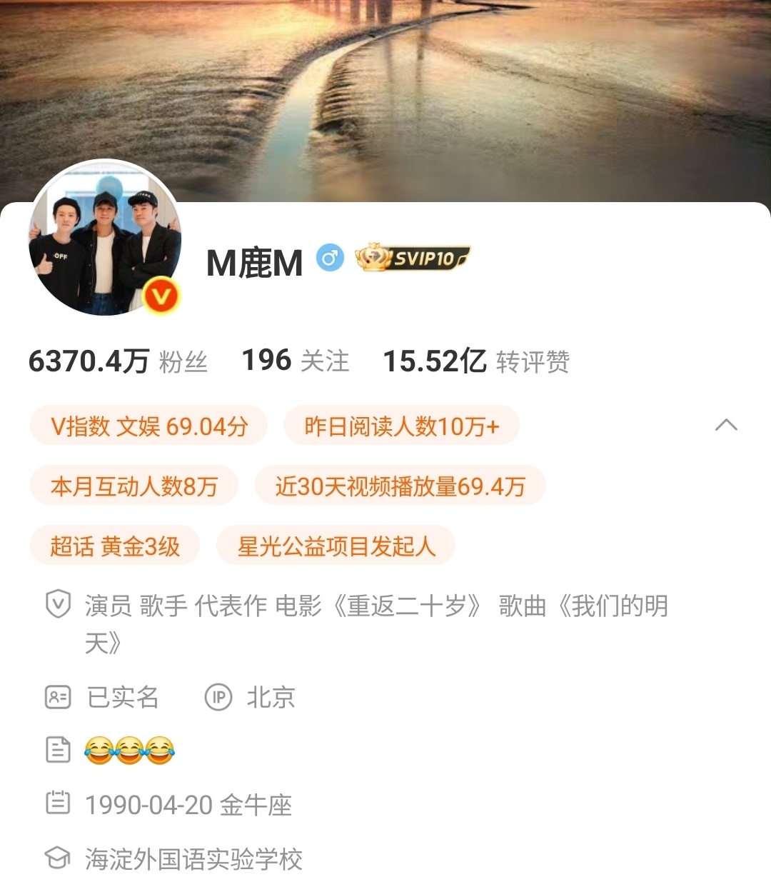 而且我看了一下,关晓彤的个人IP是在国外,鹿晗的IP是在国内。