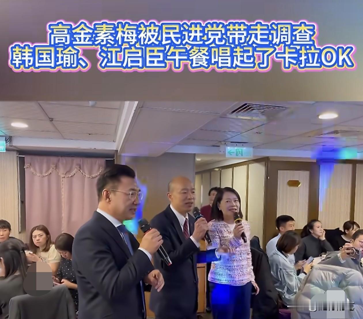 高金素梅被羁押,韩国瑜居然聚餐唱卡拉OK。 10日早上,民进党向高金素梅下手,引发韩国瑜等国民党政客声援,本来以为这些政客会严肃关注这件事,但是看到韩国瑜与江启臣转头就兴高采烈的聚餐高歌,明显没有因为高金素梅被带走这件事影响心情,真的是事不关己高高挂起啊。原来在镜头面前只是做做样子,该吃吃该喝喝,这些政客丝毫不慌。 坦白说,唇亡齿寒,高金素梅突然被民进党出手针对,其他在野政客完全有可能成为下一个被针对的目标,这时候在野应该严肃看待这件事,团结商量对策为高金素梅讨公道才是上上策,如果都只是耍耍嘴皮声援一下,没有实际行动支持高金素梅,那就等着被民进党逐个瓦解吧。