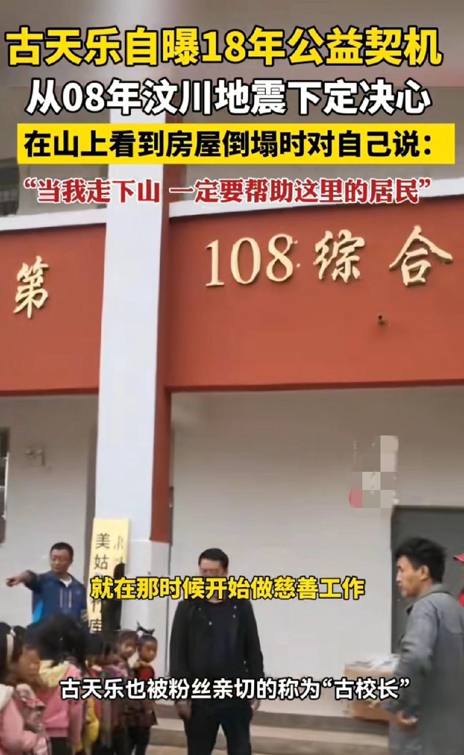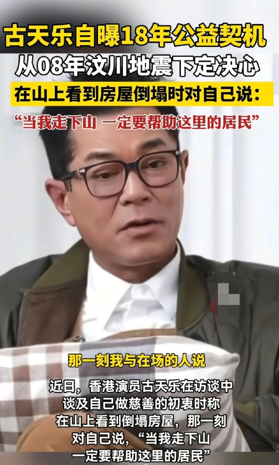 人要多做善事, 才会活得有分量! 不信你看古天乐,他对于公益的坚持,让多少人为之动容! 他说,当我走下山,一定要帮助这里的居民,热度是心里的温度,流量是真正触动人心的行动,那些才是真正的艺人担当! 他在汶川地震后成立慈善基金会,默默建了上百所学校,被粉丝亲切地称为“古校长”。 他去山区,和孩子们一起上课,帮他们圆读书梦,他去灾区,和居民一起重建家园,用行动兑现自己的承诺。 他用18年的坚持,温暖了许许多多的普通人,也难怪会被大家永远记住。