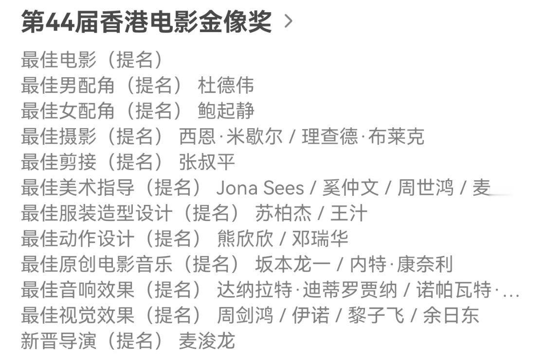 金像奖提名看了香港电影金像奖的提名,《风林火山》能提名12项其实不算夸张,毕竟港片去年一年也没上新过几部。最离谱的其实是麦浚龙提名“最佳新晋导演”。