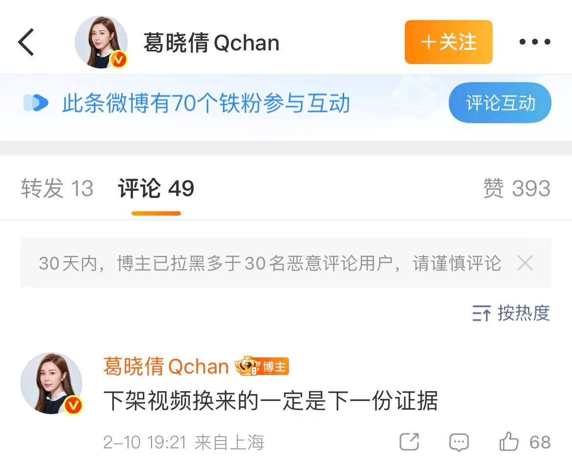 随后,葛晓倩又在评论区留言称:“下架视频换来的一定是下一份证据。”