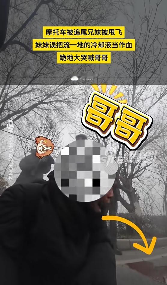 “笑不活了!”1月31日,陕西西安,一男子带妹妹骑摩托车,在减速过程中,突然被后车追尾,摩托车也被甩飞,当时红色冷却液漏了一地,妹妹便以为是男子流的血,立马赶过来扑到男子身上,哭着大喊哥哥!网友:最怕的还是追尾司机! 当行车记录仪的镜头定格在那一刻时,画面几乎是惊悚片级别的:大片刺眼的红色液体在路面疯狂蔓延,像极了刚刚切开动脉后的喷涌现场。 伴随着这视觉冲击的,是一位年轻女孩撕心裂肺的哭喊声。她不顾一切地扑向地上那个一动不动的男人,声音都在颤抖:“哥!你是不是流血了?哥你别死啊!” 那场面,惨烈得让人不敢直视。就连刚刚还在驾驶室里的肇事司机,下车看到这一幕时,恐怕魂都吓飞了一半满地“鲜血”,家属痛哭,躺着的人毫无反应。那一瞬间,他大概已经开始在脑海里预演牢狱生活了。 但这其实是一场足以载入年度“乌龙榜”的悲喜剧。把时间轴往前拨几分钟,这原本是一次再正常不过的出行。兄妹俩骑着摩托车,规规矩矩地行驶在西安的街头。前方车辆刹车,哥哥反应很快,跟着减速配合。 坏就坏在后面那位。后车司机那会儿估计正在“开小差”,注意力完全没在线。等反应过来时,物理惯性已经不给他挽回的机会了。没有丝毫悬念,后车直接暴力追尾,巨大的冲击力瞬间将摩托车撞飞,兄妹二人像断了线的风筝一样被狠狠甩到了路面上。 接下来的这一幕,就是认知错位的巅峰。撞击导致摩托车受损严重,水箱里的红色冷却液大量泄漏。在不懂机械常识的妹妹眼中,那不是化学制剂,那就是命。 看着满地的“红水”和昏迷不醒的哥哥,她的大脑瞬间宕机,直接判定这是致死量的出血。那种极度的恐慌是生理性的,她跪在地上,一边哭一边检查哥哥哪里“受了致命伤”。 那句“别吓我”,喊碎了多少网友的心,也差点把肇事司机的心脏吓停。直到那个被判定“濒死”的哥哥突然动了动,随后竟然迷迷糊糊地站了起来。 现场的气氛瞬间从《死神来了》变成了《神反转》。经确认,地上那滩触目惊心的红,全是摩托车的冷却液。 哥哥去医院检查后,除了一些皮外伤和软组织挫伤,身体各项指标竟然奇迹般地没有大碍。那滩红色的液体骗了所有人,却也反向证明了护具和落地姿势的重要性。 结局没有任何争议。交警到场后,看着这戏剧性的一幕,判定后车司机负事故全部责任。除了修车和医药费的赔偿,这位司机大概还得花很长一段时间来治愈这一天的心理阴影毕竟,误以为自己背上了人命的那几分钟,恐怕比赔钱更让他刻骨铭心。 这事儿虽然后劲儿有点好笑,但回过头看,全是冷汗。如果没有那层护具,如果撞击角度再偏一点,那地上的红色,可能就真的不仅仅是冷却液了。 信息来源:《摩托车被追尾兄妹被甩飞,妹妹误把流一地的冷却液当作血,跪地大哭喊哥哥》新浪新闻
