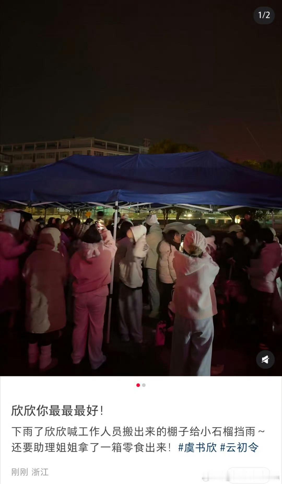 虞书欣今天给小石榴们发了零食还给粉丝们支了帐篷防止淋雨🥺好爱粉护粉的舒心宝宝,