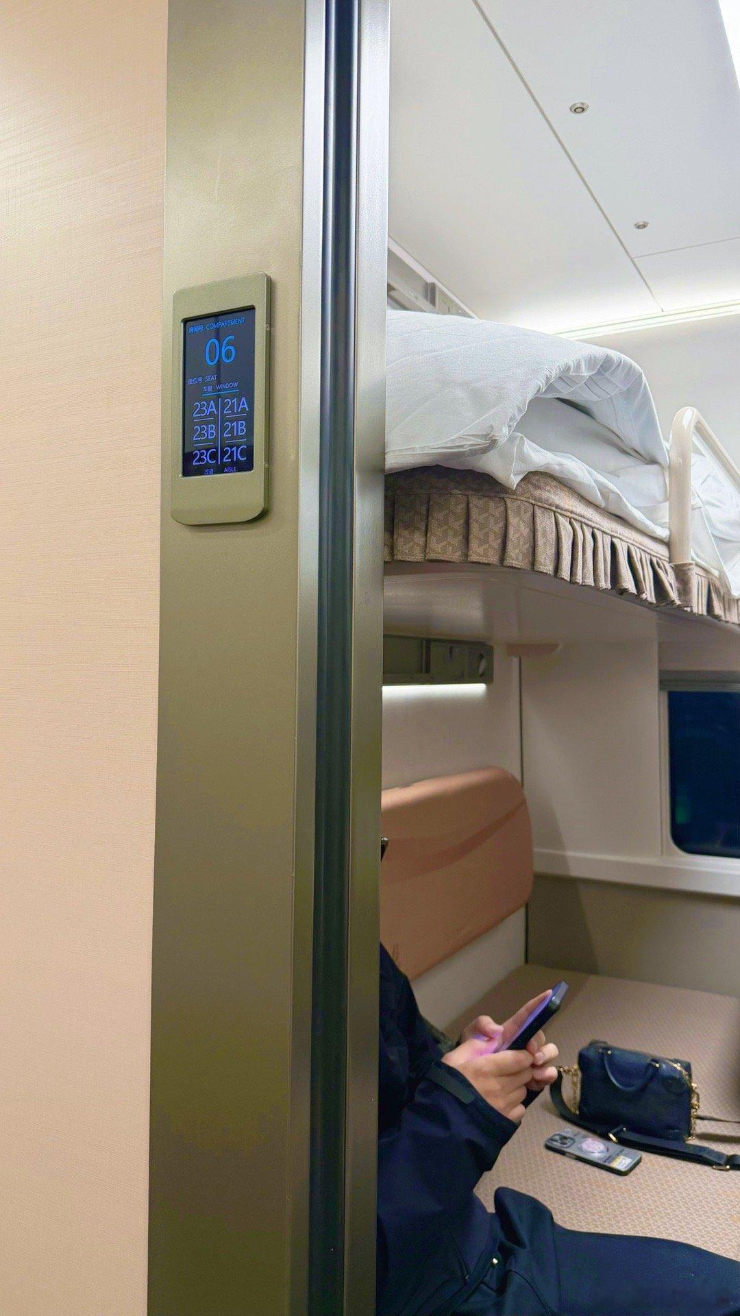 第一次坐卧铺改的高铁,六个人面对面在一个小屋,靠背纯垂直,腿部很容易和对面打架,靠外的座位也没有小桌板,只有左右空间能保持点社交距离不过春运时期,这样解决一下运力,完全是个好办法春节返乡要稳不要快
