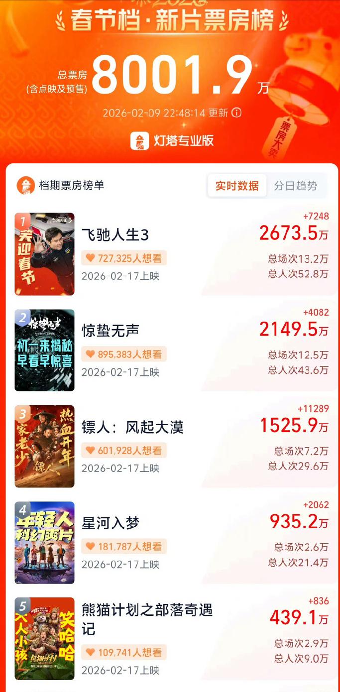 春节档压力最大的应该是吴师傅了吧。 7亿的投资,1500万的预售票房,11亿的总票房预测, 这个数据对比实在是太不容乐观了。 这两天吴京发微博特别频繁,看得出来开始着急了。 看到吴京+李连杰+谢霆锋,三大影帝都打不过一个沈腾时, 看到成龙+马丽,(预售票房)都打不过王鹤棣时, 真的蛮感慨的! 时代抛弃你时,真的是连声招呼都不打!