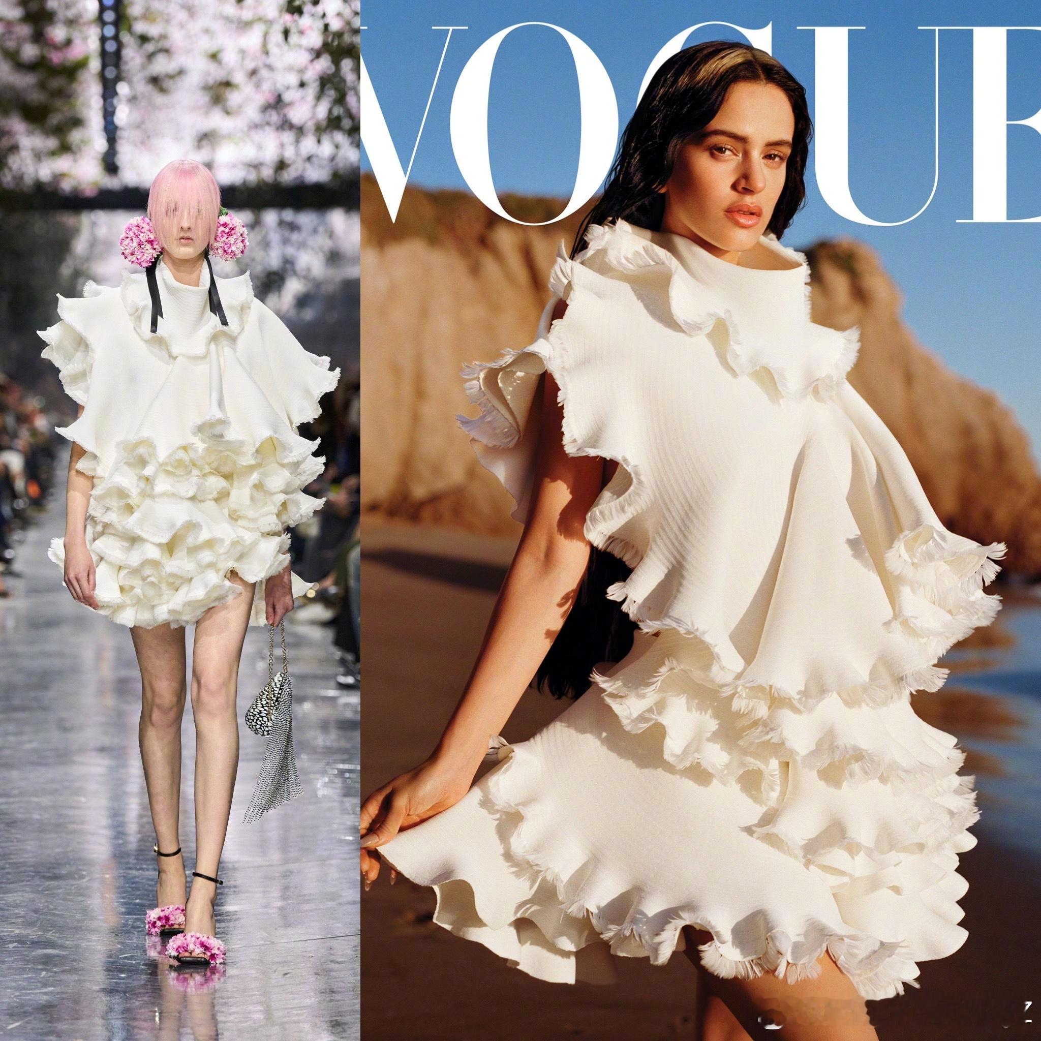 美国版 VOGUE 春季刊,歌手、演员 Rosalía 身着 Dior 2026春夏高订礼服亮相封面,这件裙装大约半个月前才刚刚在巴黎发布。