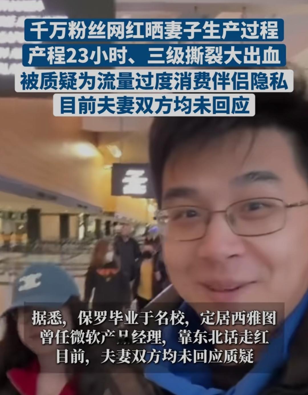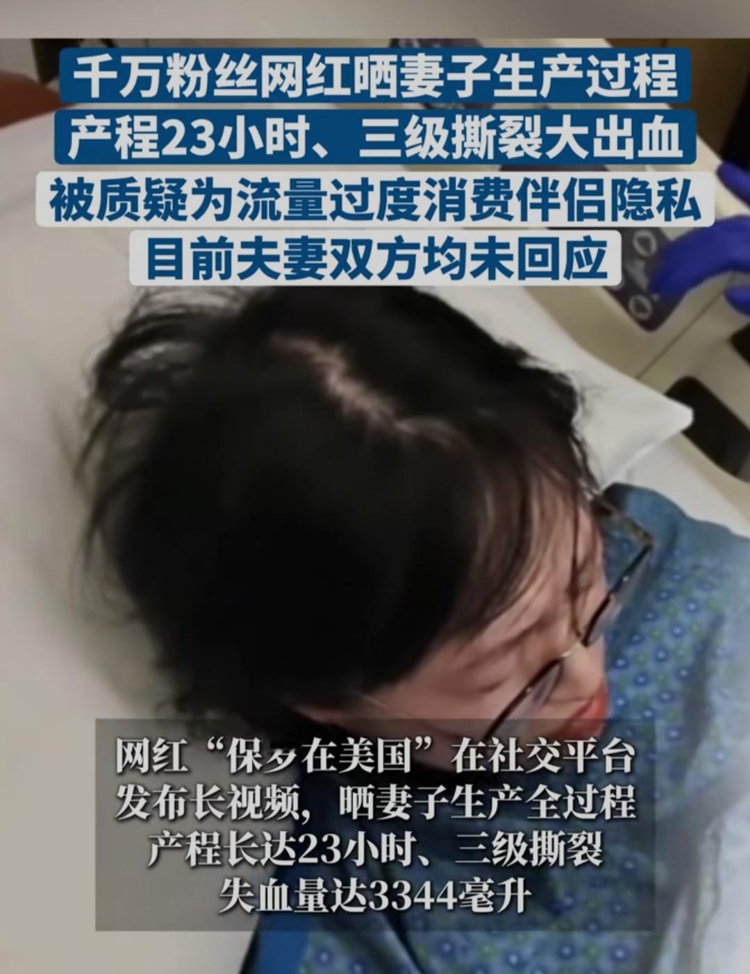 谁能想到,原本该是迎接新生命的暖心时刻,却因为一条生产全过程视频,让这对夫妻陷入了热议。千万粉丝网红记录下妻子23小时的艰难产程,三级撕裂加大出血的煎熬,都被镜头一一捕捉,全网看了都跟着揪心。 镜头里的每一个画面,都是新手妈妈拼尽全力的证明,可这份真实的记录,却在网络上掀起了不小的波澜。有人心疼妈妈的不易,也有人对这份公开的记录产生了质疑,关于隐私,关于边界,大家各有各的看法。 如今争议发酵,博主已经删掉了视频,也关掉了评论区,夫妻俩始终没有站出来回应任何声音。新生命的到来本是满心欢喜,只是这场围绕记录的讨论,也让大家开始思考,亲密的瞬间,到底该留予自己,还是分享给众人。