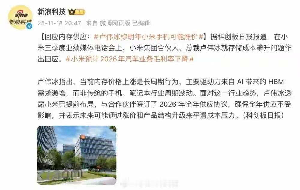 最近爆料说,小米18要上高通新一代旗舰芯片,成本涨得有点猛,芯片单颗成本都快破300美元了,再加上内存涨价,卢伟冰都暗示可能要涨价。芯片用的是SM8975,虽然测试支持LPDDR6,但量产可能不上,估计是为了压成本。影像也有升级,标准版都要上3X潜望长焦,拍照体验应该会更好。成本涨这么多,小米18的价格估计要往上走,就看最后定价能不能守住“性价比”的底线了。数码资讯